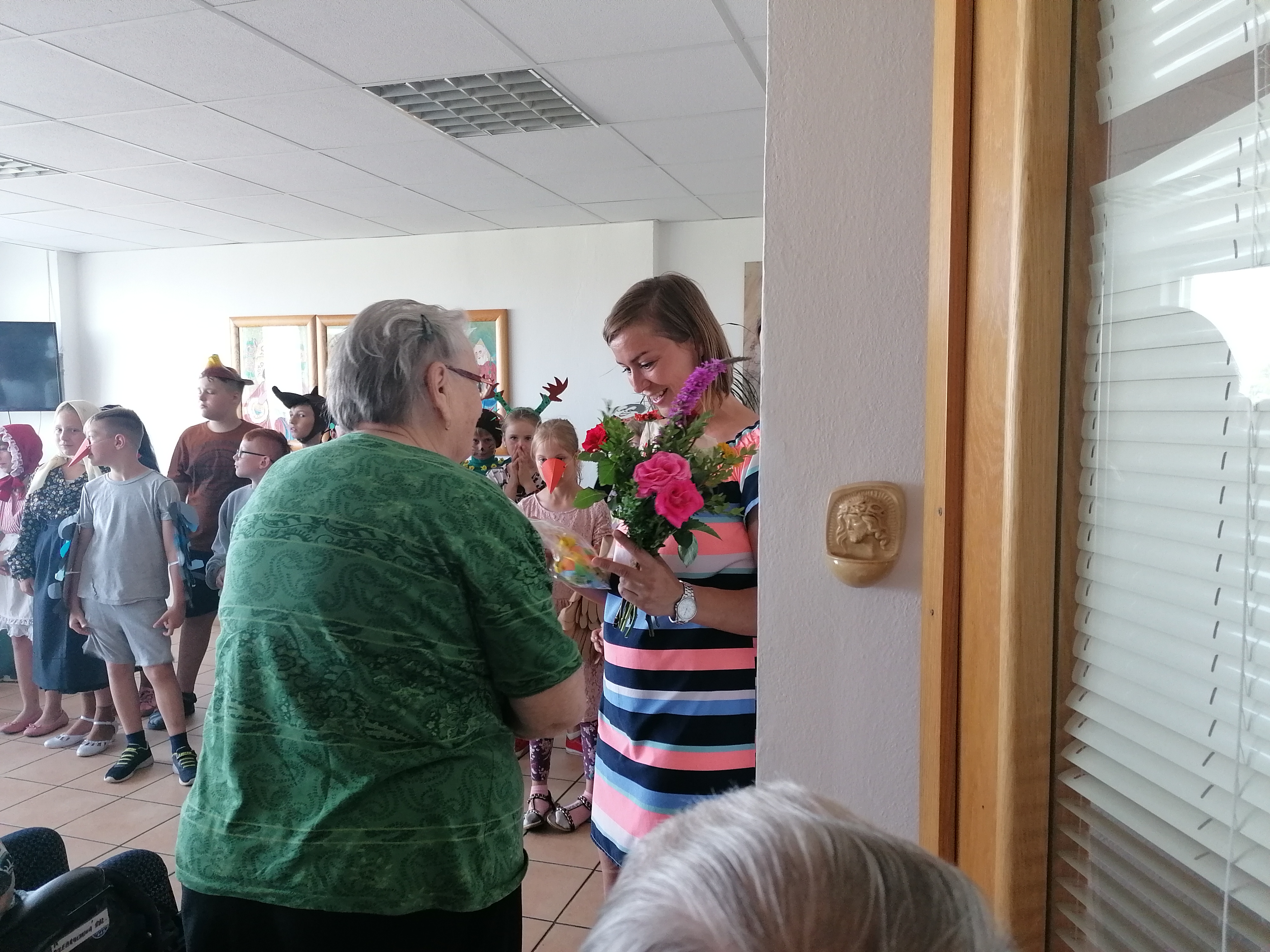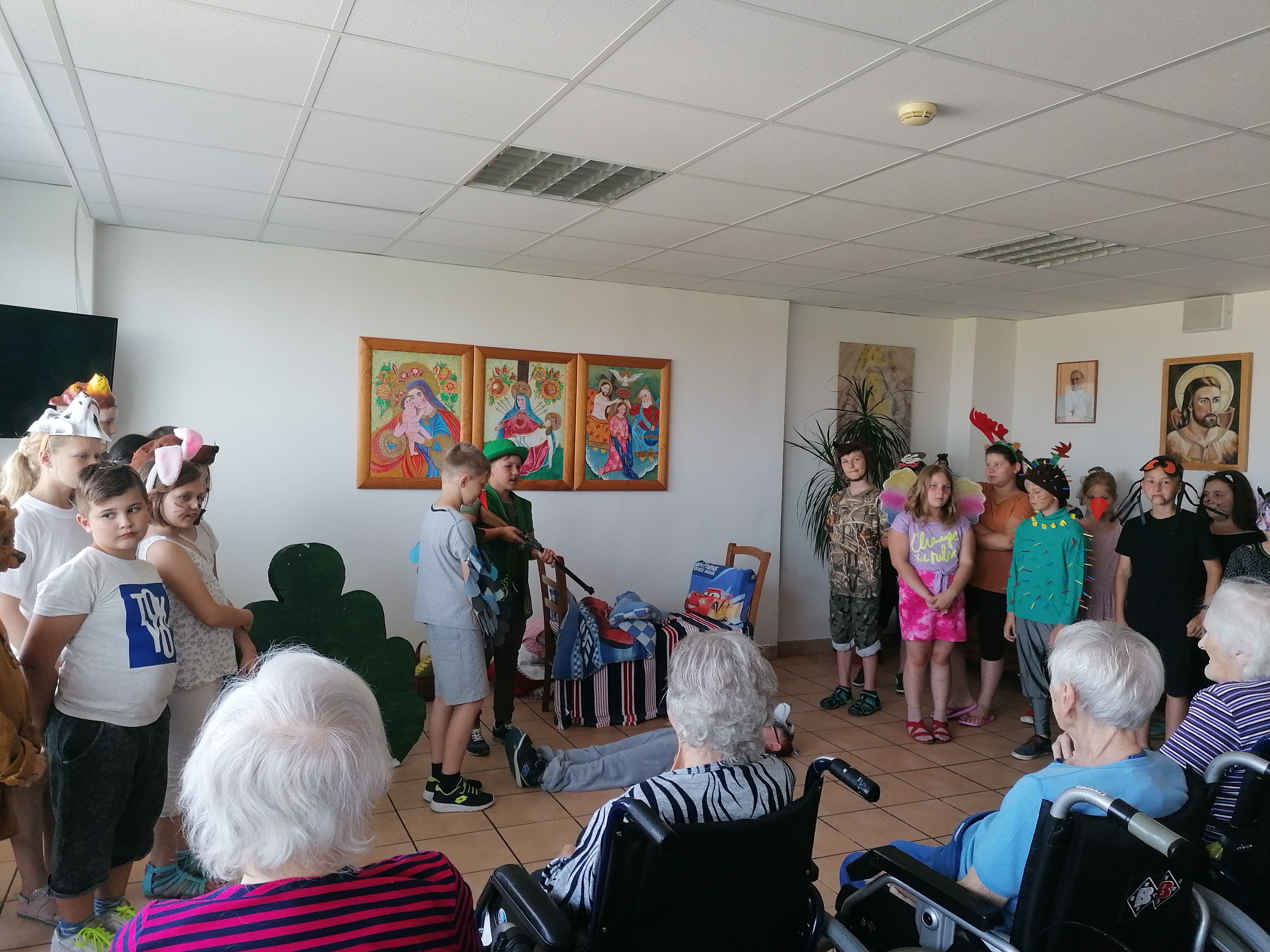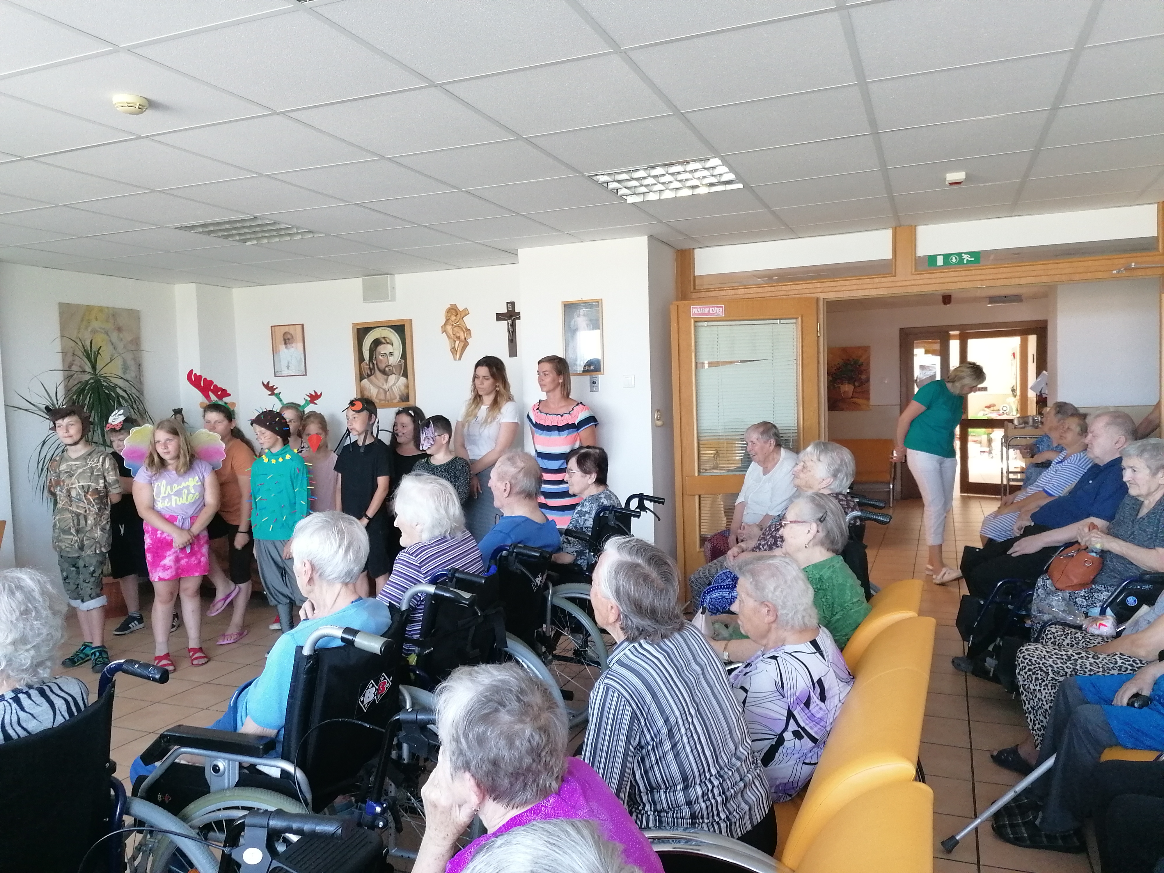 Dňa 19.6. medzi nás zavítali tretiaci zo Základnej školy Gbely v sprievode pani učiteľky Mgr. Kondlovej s divadielkom O červenej čiapočke. Deti prišli oblečené v krásnych kostýmoch. Vystúpenie trvalo necelú polhodinku, sprevádzané bolo piesňami. Naši Obyvatelia boli veľmi spokojní, na chvíľu sa vrátili do čias svojho detstva, kedy oni hrávali v školách divadlá. Všetci sme odchádzali s radosťou v srdci, ktorú budeme rozdávať všade naokolo svojim blízkym.