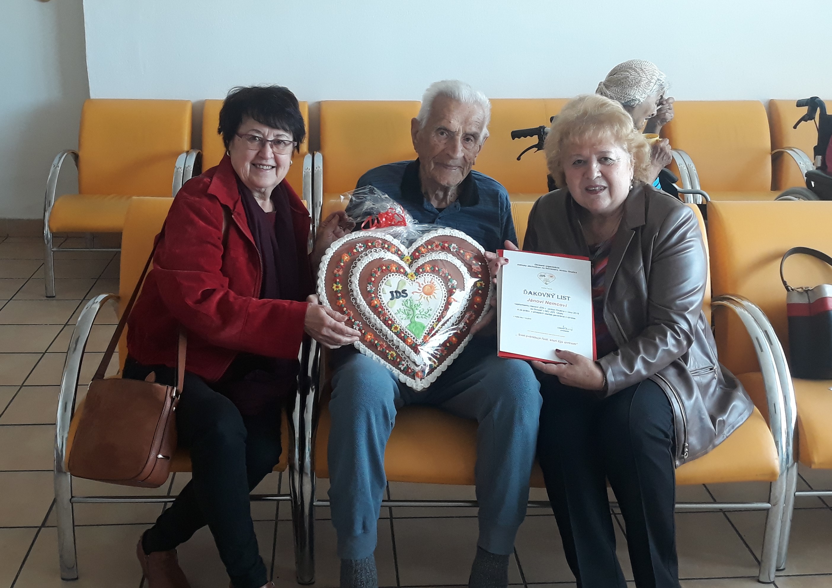 Naši obyvatelia, ktorí v roku 2019 dosiahli okrúhle životné jubileum, alebo sa dožili veku vyššieho ako 85 rokov a ktorí sú členmi Jednoty dôchodcov Gbely, boli pozvaní na slávnostné posedenie v kultúrnom dome. Členky jednoty dôchodcov pripravili pre jubilantov pekný kultúrny program, ktorý začínal prednesom poézie a pokračoval speváckymi vystúpeniami. Podávala sa káva, chlebíčky aj koláčik. Naši obyvatelia stretli mnoho svojich rovesníkov, s ktorými sa už dlhší čas nevideli, preto bolo posedenie veľmi príjemné. Jeden z našich obyvateľov sa v roku 2019 dožíva krásnych 95 rokov, preto mu bol od členov Jednoty dôchodcov odovzdaný pamätný list a veľké perníkové srdce. Zo zdravotných dôvodov sa nemohol zúčastniť posedenia, preto mu darčeky boli odovzdané v našom zariadení. Ďakujeme Jednote dôchodkov Gbely za pozvanie na toto pekné podujatie.