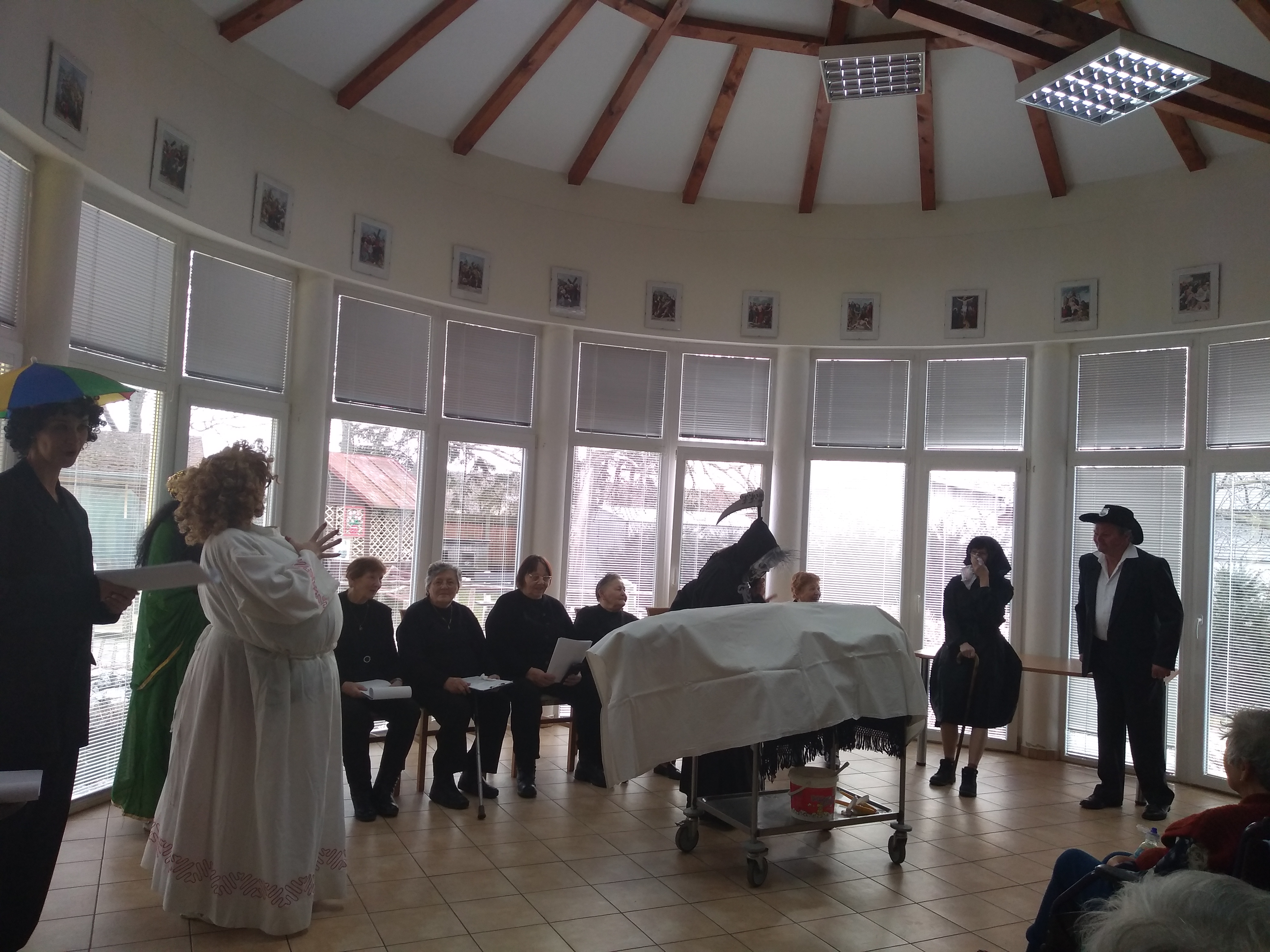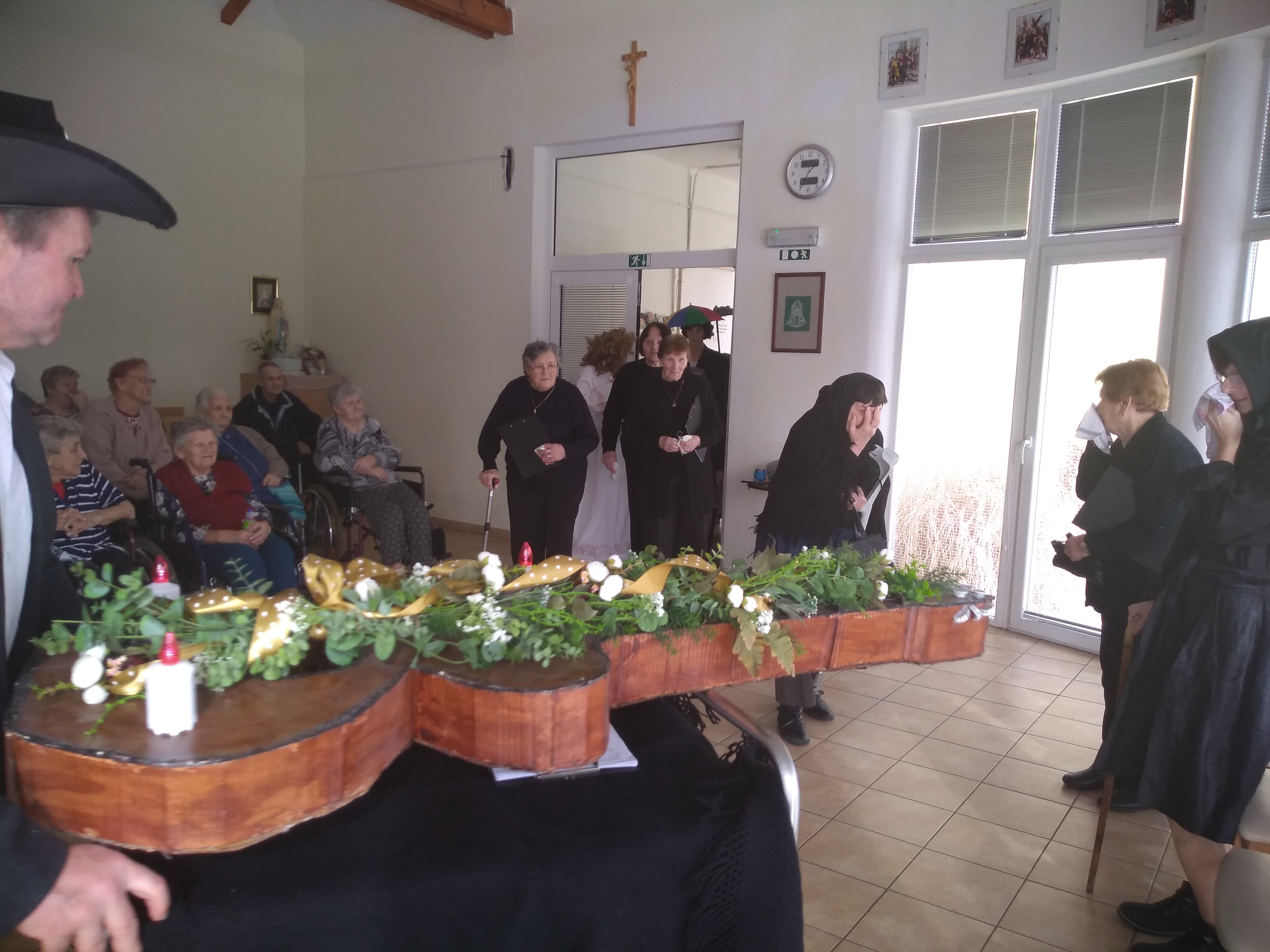 Na záver fašiangového obdobia pripravujeme aj pre našich klientov tradičné kultúrne podujatie - pochovávanie basy, ktoré sa uskutočnilo v utorok, pred popolcovou stredou. Pri tomto symbolickom pochovávaní vystúpili klienti zariadenia s pripravenou scénkou a zamestnanci v kostýmoch lekára ohlasujúceho smrť basy, kňaza, kostolníka, smrtky, smútiacich pozostalých, tzv. "plačiek." Bol to obrad plný plaču, smiechu a hlavne zábavy parodujúcej poslednú rozlúčku, ktorá ohlasuje koniec zábav. Keďže už je basa pochovaná, môže sa začať obdobie pôstu.
