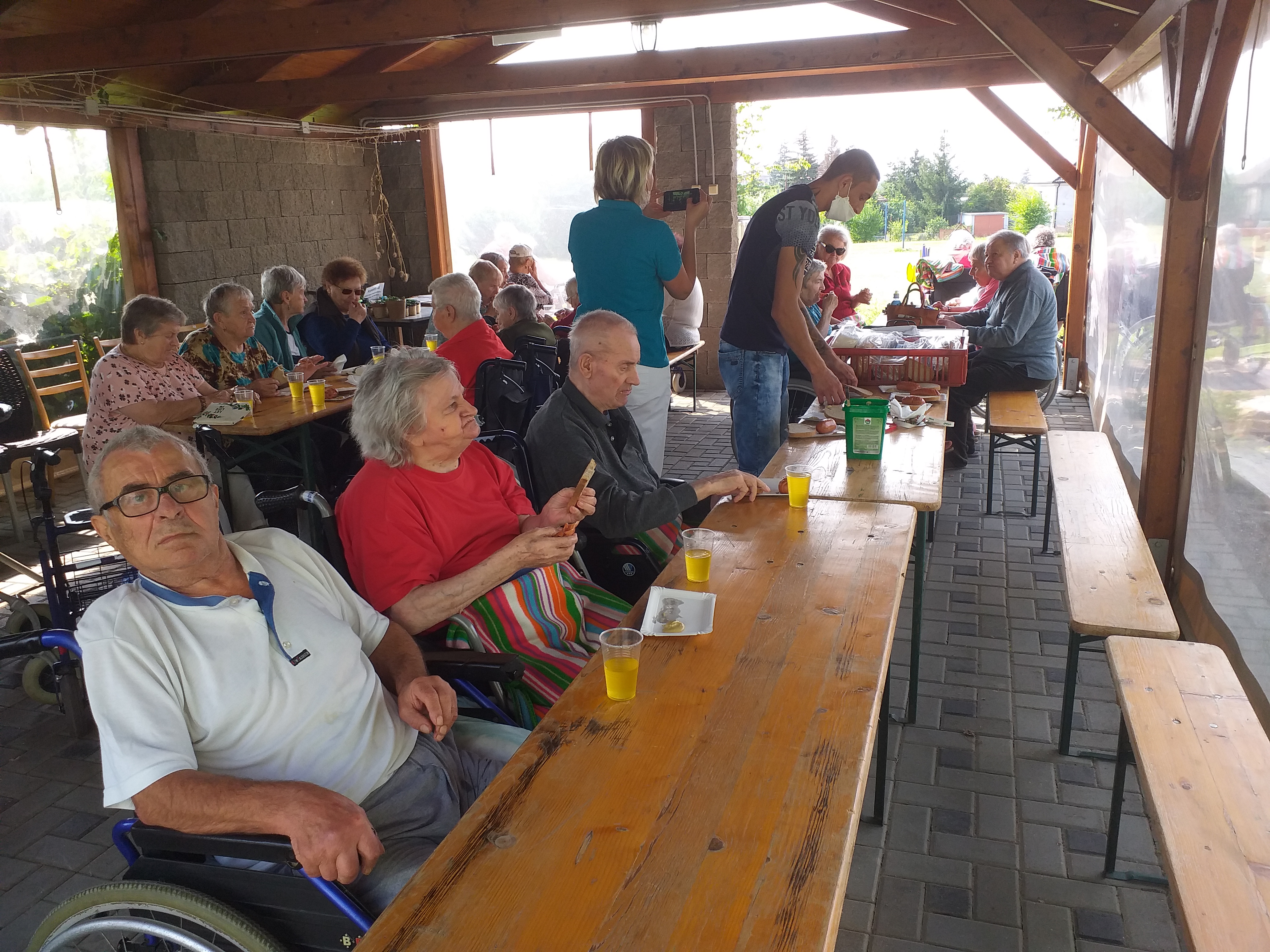 Využili sme posledné slnečné dni a urobili si pekné poobedie - opekačku. Nakoľko opatrenia v súvislosti s COVID-19 sú veľmi prísne a naši klienti sú najohrozenejšou skupinou obyvateľov nemohli sme túto akciu zorganizovať spoločne pre obe budovy. Opekačka sa konala v altánkoch aj na budove na ul. Prof. Čárskeho a na Hudecovej ul. Spoločne si pochutili na opekaných špekáčikoch, zabavili sa, porozprávali, oddýchli a spestrili život v zariadení.