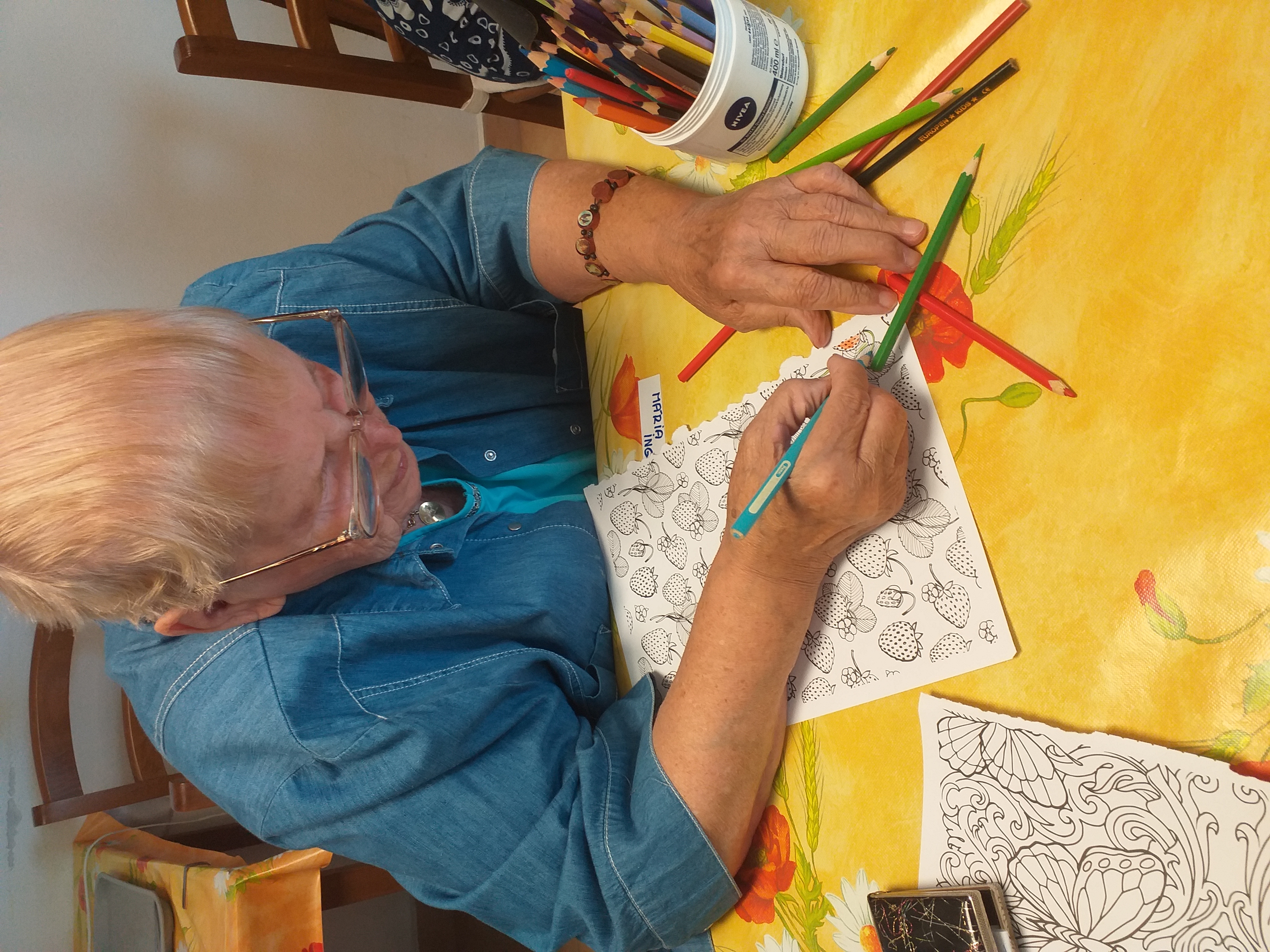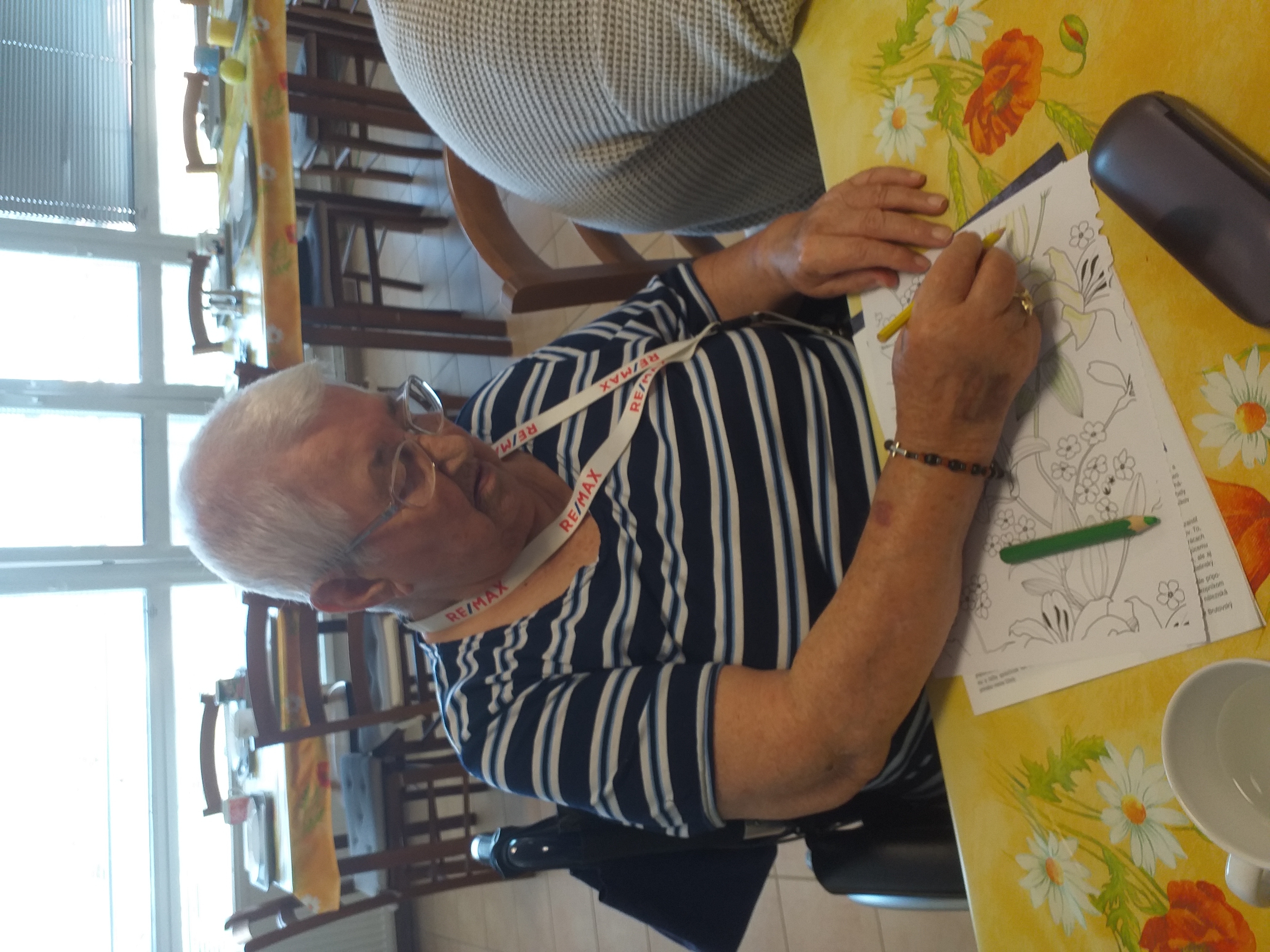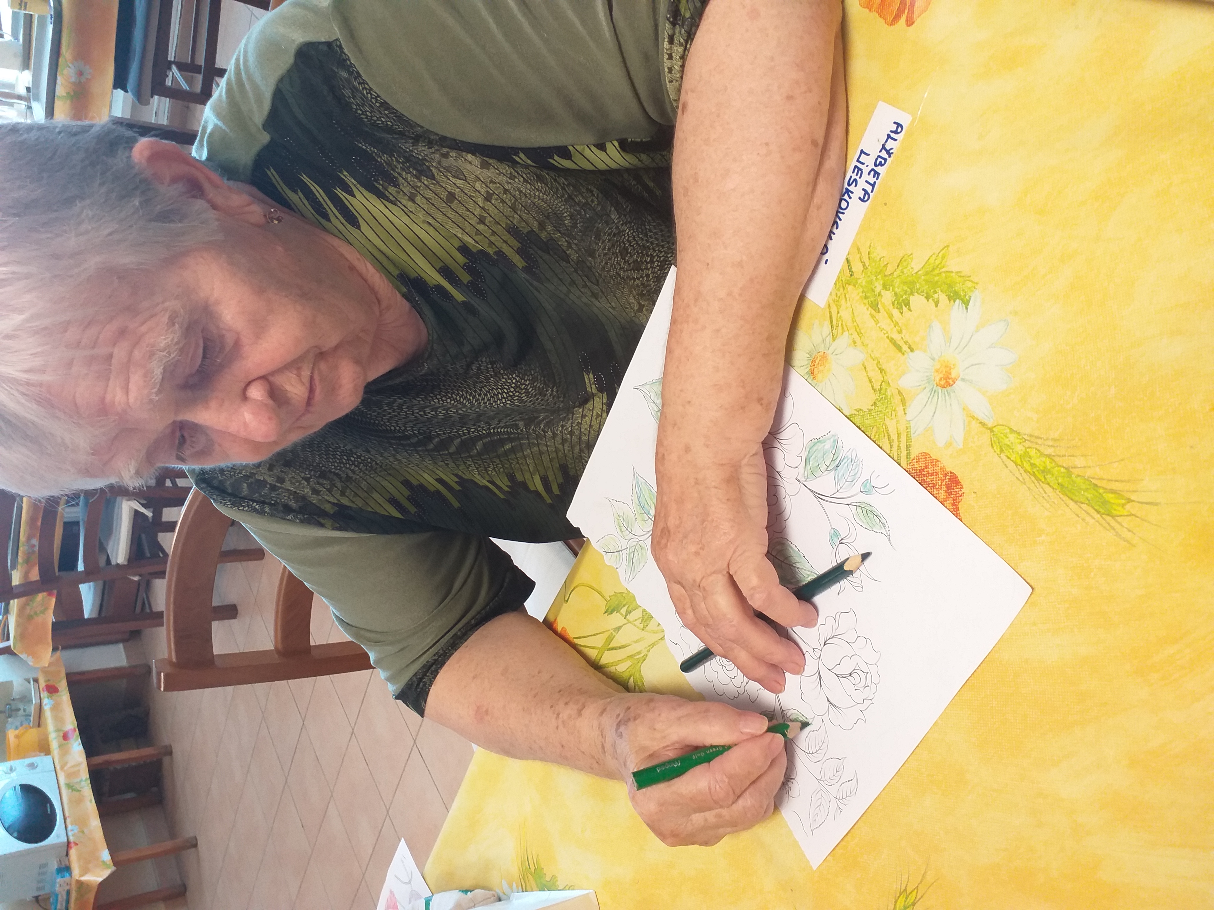 Činnosti s prvkami arteterapie sú bežnou dennou súčasťou trávenia voľného času našich klientov. Antistresové omaľovánky majú krásne vzory, pomáhajú nás zbaviť napätia, vyčistiť hlavu, či priviesť na iné myšlienky. Vyfarbovaním sa vraciame do bezstarostných čias detstva, zapájame kreatívnu časť mozgu a trénujeme jemnú motoriku. Vyskúšajte ich aj vy, určite Vás upokoja v tejto uponáhľanej dobe...