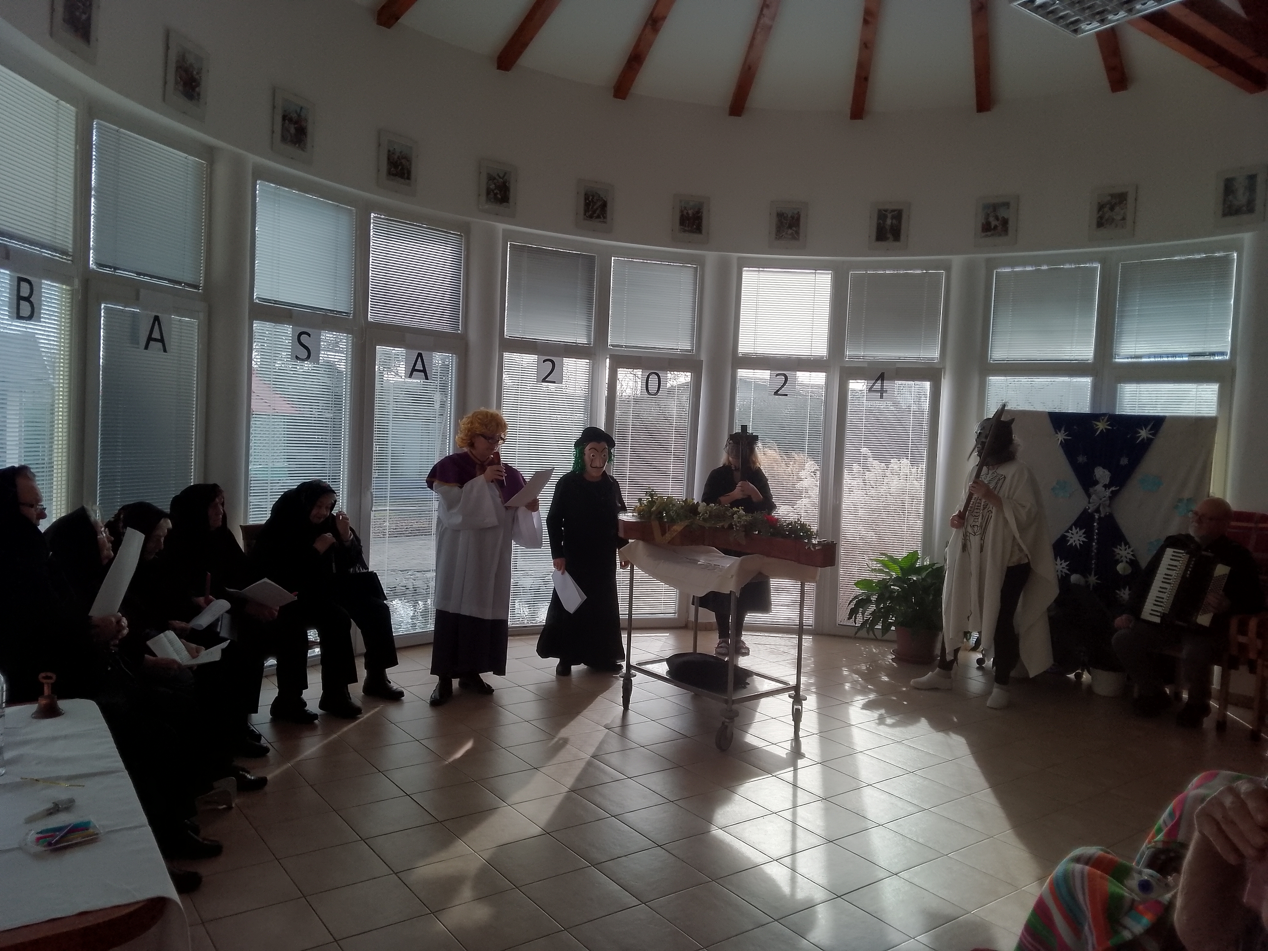 Ako každý rok, aj tento rok nadišiel čas fašiangov . Obyvatelia si zatancovali, zaspievali, pretože nasledujúcich 40 dní nás čaká pôst. Do spevu a tanca nám prišiel zahrať a zaspievať pán Bolebruch. Zrazu tancovačku prerušila vysoká Smrtka, ktorá hľadala basu, a tak nám zábava prešla do „pochovávania basy“. Basu sme so smútočným sprievodom a veľkým plačom priviezli a potom sme sa s ňou smútočnými rečami a piesňami rozlúčili. Basu sme veľmi oplakali, ale nič sa nedá robiť, museli sme ju na štyridsať dní pochovať. Obyvatelia si tento jedinečný zážitok vychutnali.