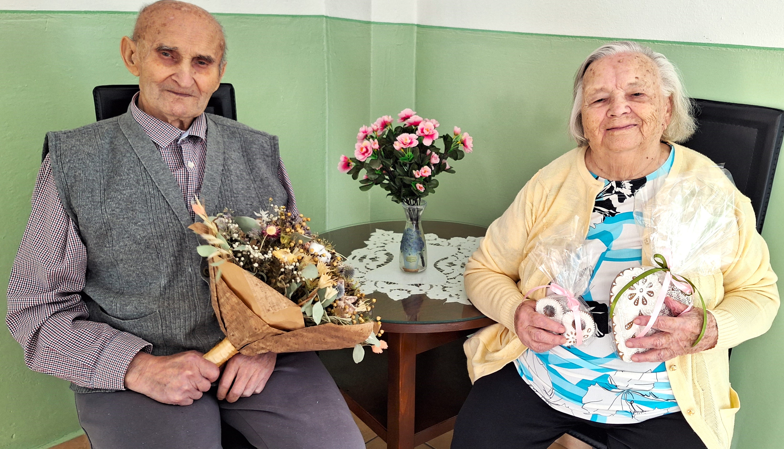 Krásne životné jubileum oslavovali naši seniori. Sú to najstarší obyvatelia mesta Gbely a zároveň aj na DPS Hudecova Gbely. p.A. Škrovanová 99r. a p. Kubinec Alojz 97r. Prajeme im veľa zdravia a síl do ďalších rokov života.