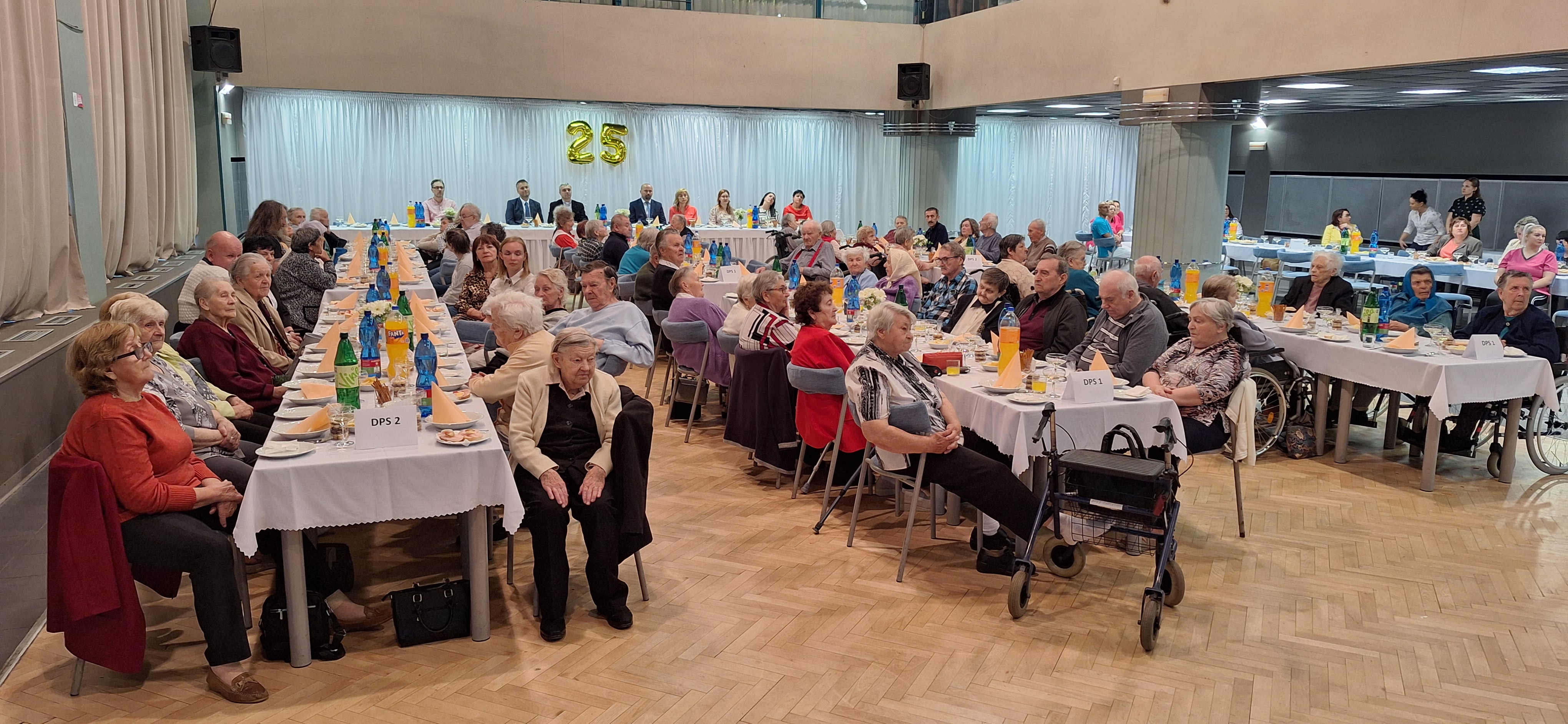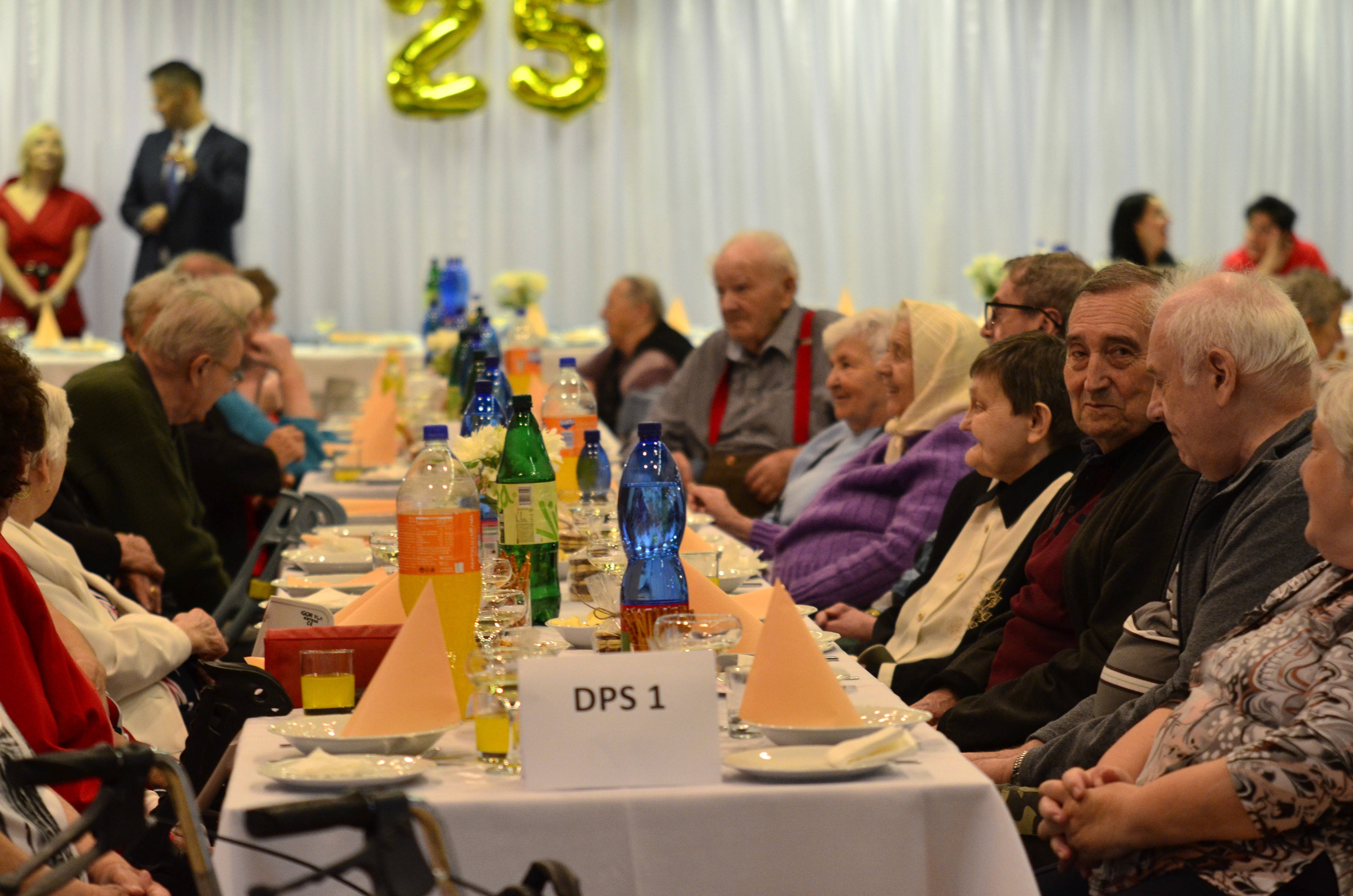 Pri príležitosti 25. výročia založenia Domu pokojnej staroby n.o., Gbely sa v Dome kultúry konalo slávnostné posedenie obyvateľov zariadenia z budovy Čárskeho a Hudecová. Slávnosti sa zúčastnili aj pozvaní hostia - p. primátor Mesta Gbely Mgr. Martin Jahodka, p. prednostka Ing. Gabriela Kováčová, p. Mgr. Dávid Jureňa, p. farár Andrej Fordinál, členovia správnej rady a spriatelené zariadenia. Po prečítaní príhovoru p. riaditeľkou Ing. Petrou Krbicovou, primátor Martin Jahodka spolu s prednostkou Gabrielou Kováčovou odovzdali ocenenie dvom zamestnancom, p. Viere Prachárovej a p. Gabriele Dúbravovej, ktoré pracujú v zariadení od jeho založenia a poďakoval im za dlhoročnú prácu. O zábavný program a príjemnú atmosféru sa postarali Detský folklórny súbor „Skaličánek“ a bratia 2bra3 Šediví, ktorí hrali a spievali na harmonike. Ďakujeme našim kuchárkam, ktoré sa postarali o vynikajúce jedlo a chlebíčky.
