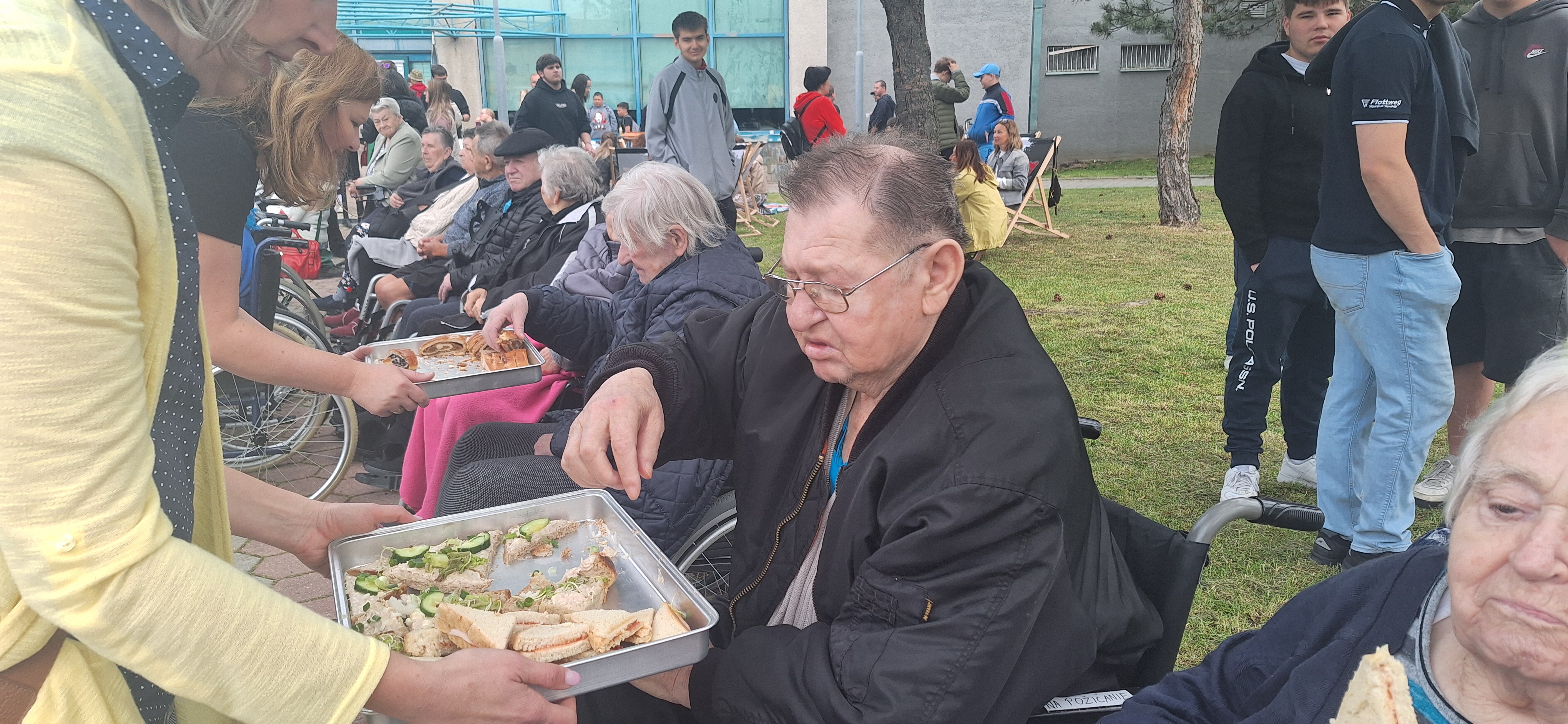 Ráno bez raňajok, nie je dobré ráno. „Komunitné raňajky v meste Gbely“ organizovala tanečná skupina „ENDY“. Dnes ráno mal každý možnosť zastaviť sa pri Dome kultúry a vybrať si z pestrej ponuky raňajok. Veľký výber slaných a sladkých variantov, ovocie, mini koláčiky, chlebíčky, káva, ovocný džús, malinovky. Vďaka dobrovoľníckej pomoci študentov zo Strednej odbornej elektrotechnickej školy v Gbeloch sa raňajok mohol zúčastniť väčší počet seniorov zo zariadenia. Pre našich seniorov to bol pekný výlet a zážitok. Ďakujeme študentom a p. učiteľke Skalovej M. za poskytnutú pomoc s presunom seniorov používajúcich invalidný vozík.