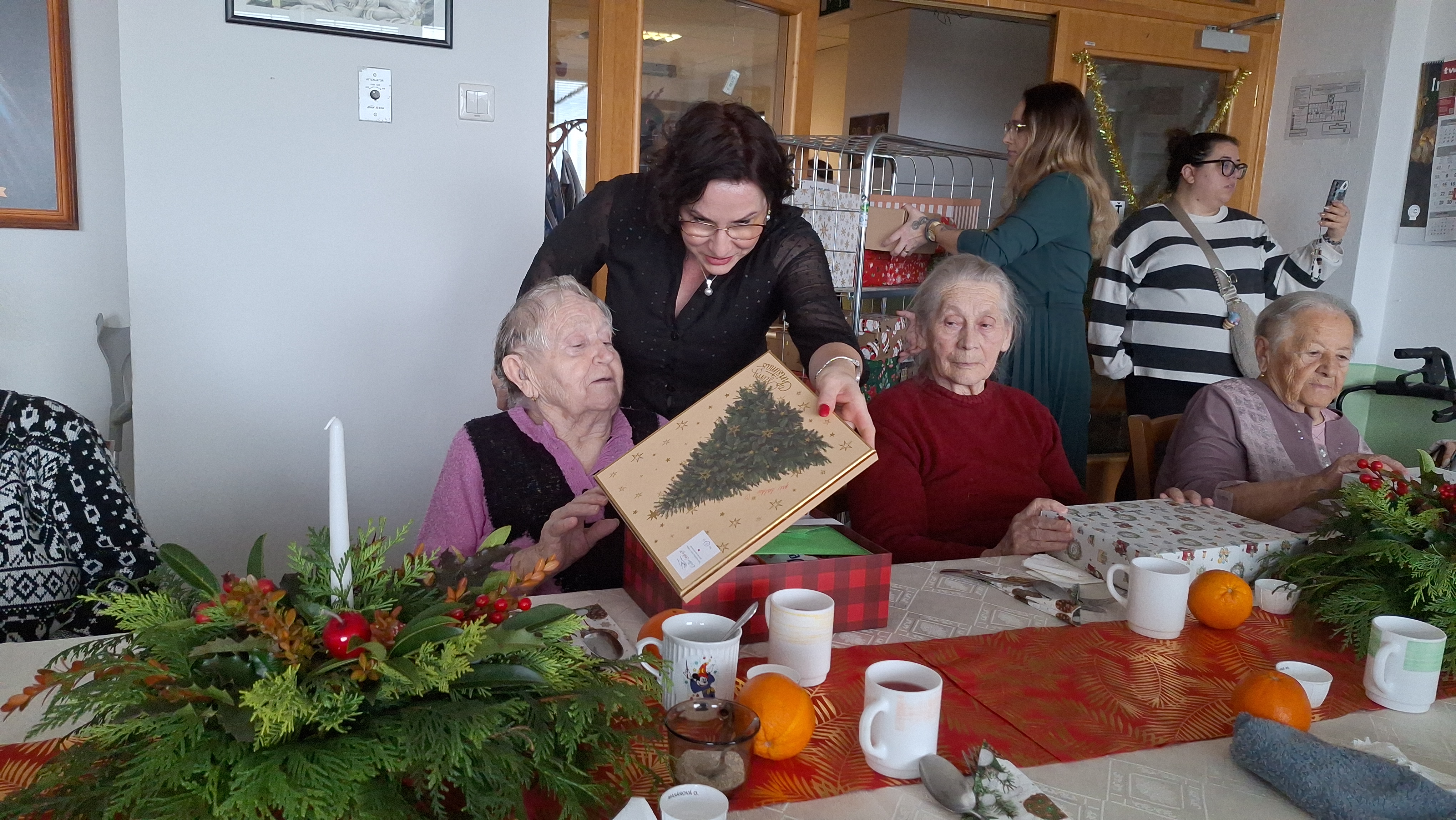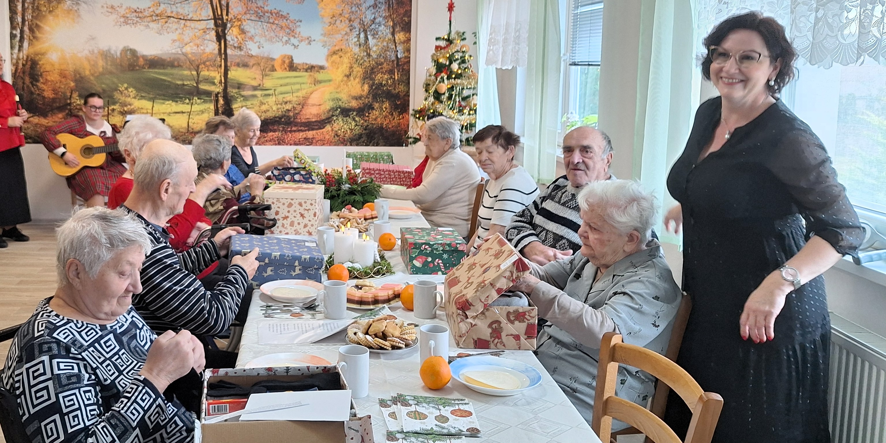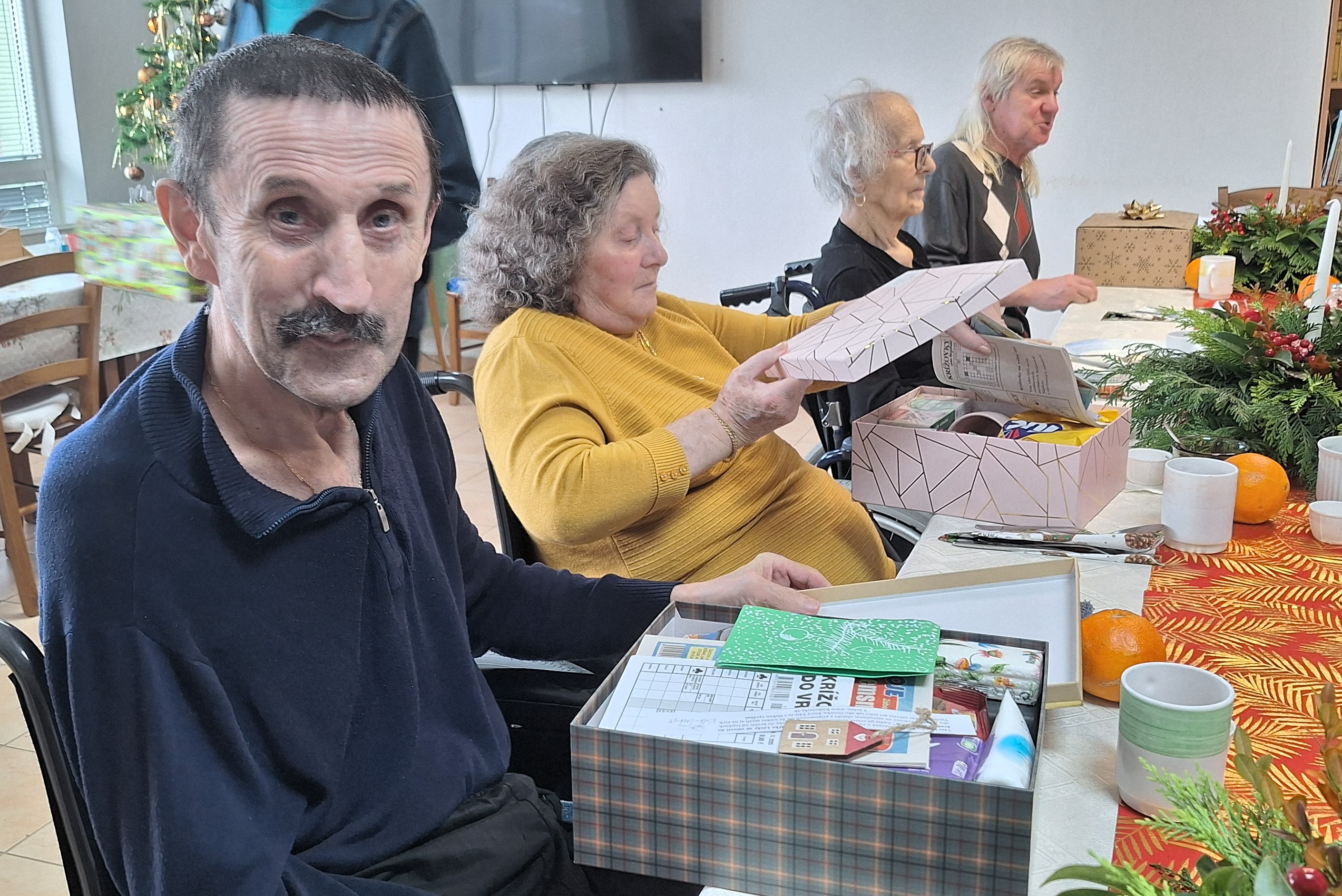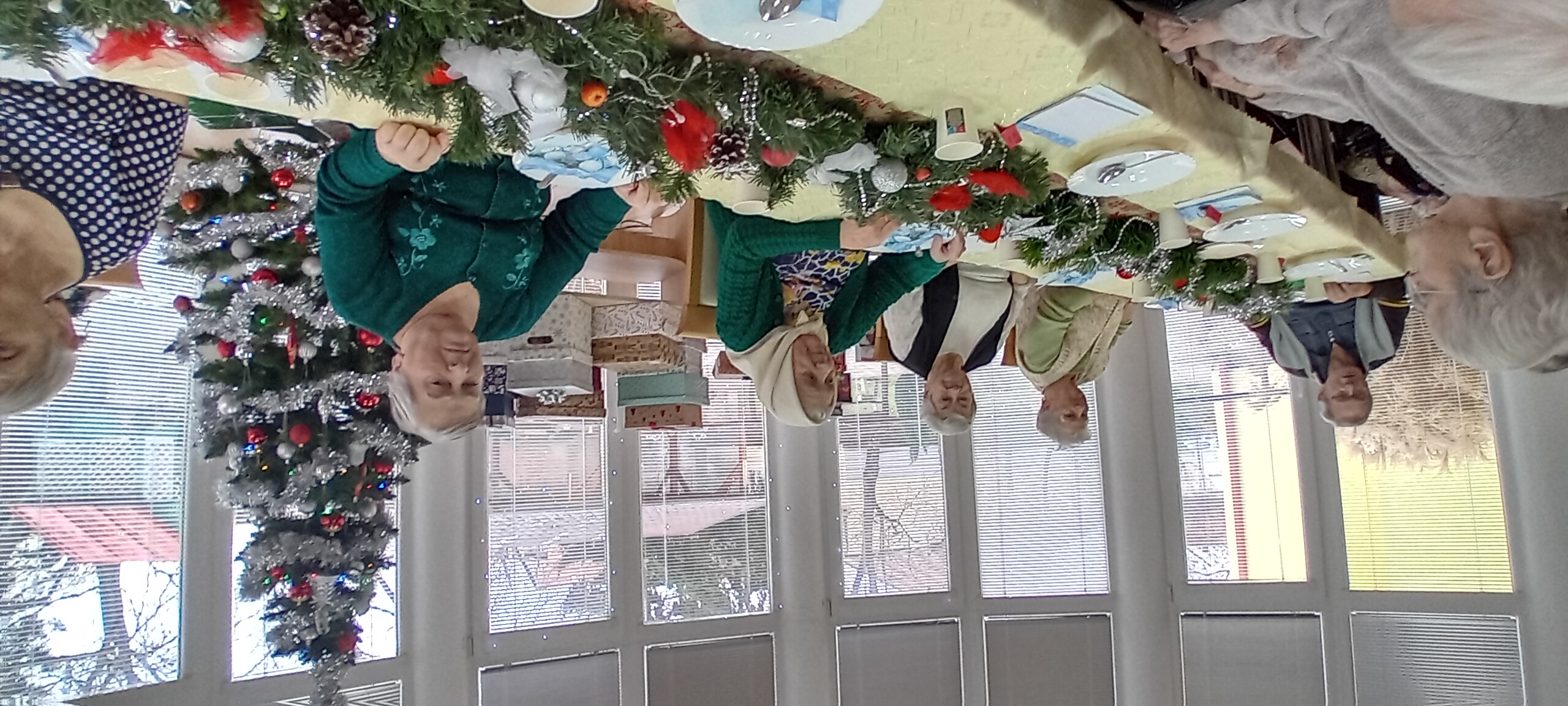 Vianočný čas sme s našimi klientami oslávili spoločným Štedrým obedom, ktorý sa niesol v duchu tradícií, vianočnej hudby, vône vynikajúceho punču a malých darčekov v krabičke. Seniori si vychutnali obed pripravený našimi kuchárkami, pri ktorom nechýbali oplátky s medom, klasické vianočné jedlá a orechovo-vanilkové rohlíčky napečené samotnými klientami. Slávnostnú náladu dotvárali stoly ozdobené krásnymi vianočnými dekoráciami. Pripomenuli sme si vianočné zvyky, popriali si zdravie, šťastie, zdieľali spomienky a príbehy z minulosti. Počúvali sme vianočné koledy, ktoré vytvorili hrejivé čaro Štedrého dňa. Naši seniori prežili tento deň naplno. Štedrý deň v našom zariadení nebol len o jedle a darčekoch, ale predovšetkým o spoločne strávenom čase, blízkosti a pocite, že nikto nie je sám. Práve takéto chvíle nám pripomínajú, že Vianoce sú o vzájomnej podpore, ľudskosti a teple, ktoré dokáže naplniť srdce každého z nás. Veľké poďakovanie patrí kuchárkam, ktoré s ochotou, trpezlivosťou a srdcom pripravili slávnostný obed. Všetkým prajeme pokojné a radostné Vianoce plné lásky a pohody.