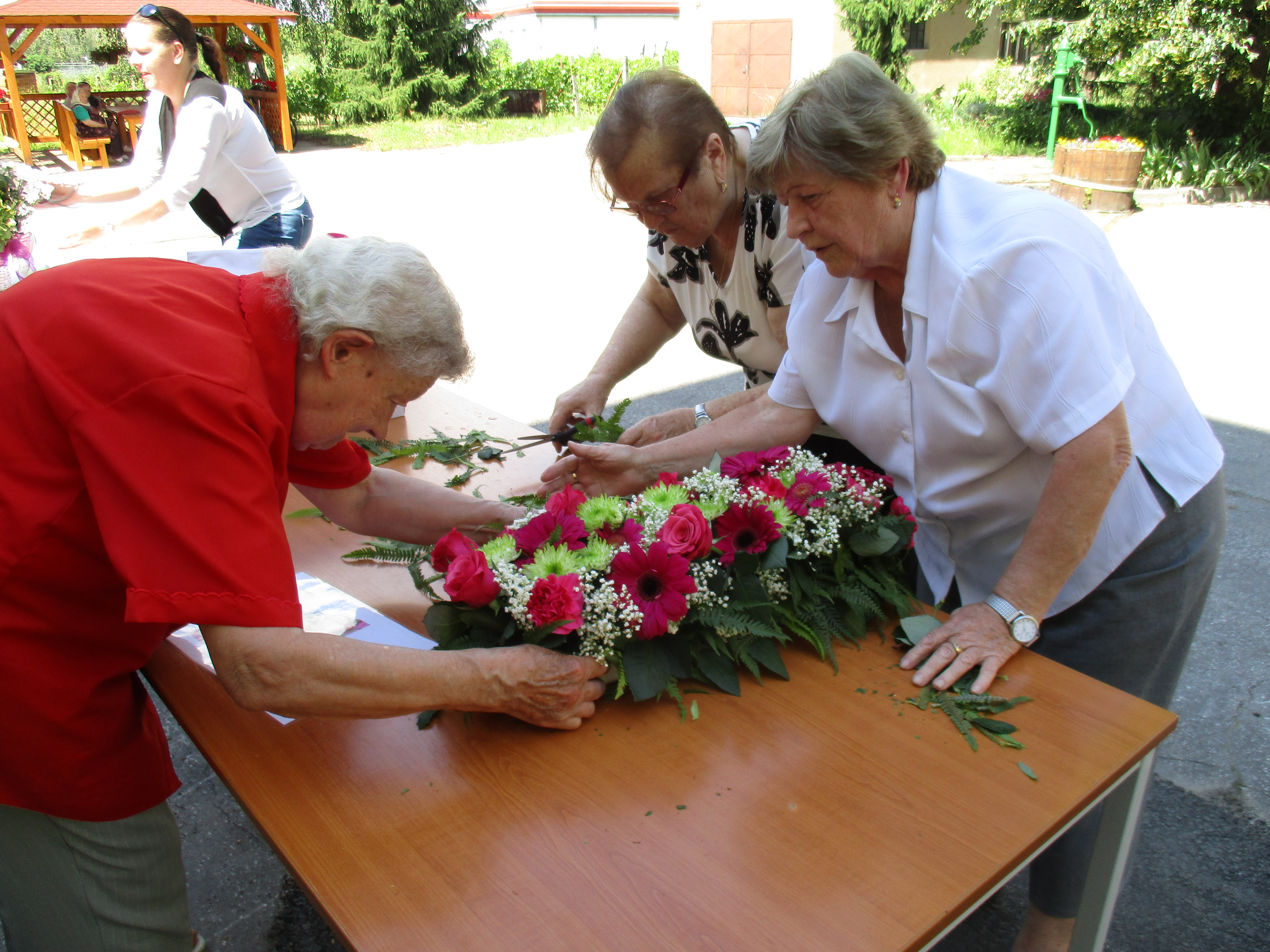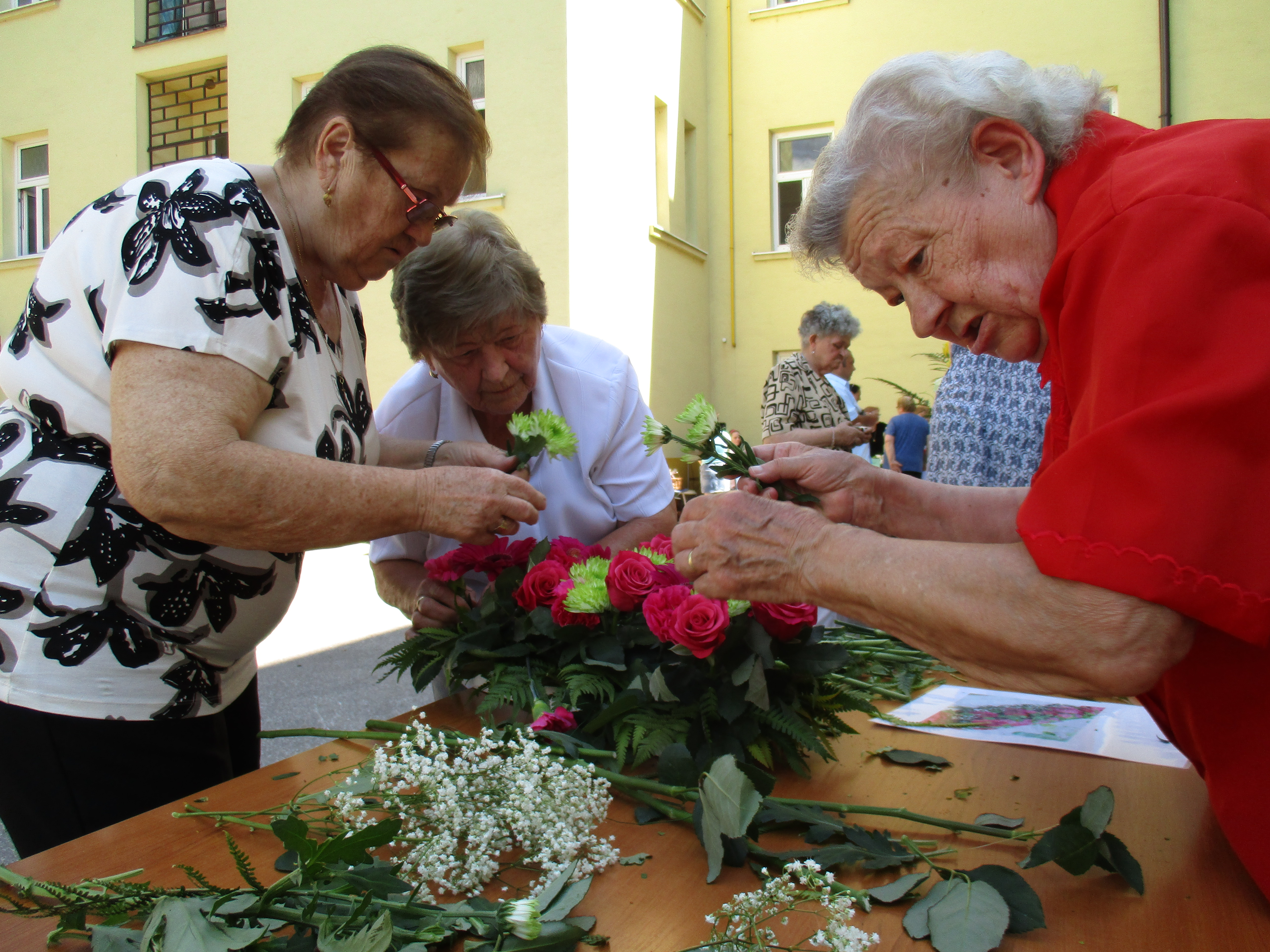 V stredu dňa 22.6.2016 sa v Domove dôchodcov a domove sociálnych služieb pre dospelých v Holíči konal jubilejný 10. ročník podujatia "Kvetinový deň", na ktorý sme prijali pozvanie tak, ako aj po minulé roky. V úvode podujatia odzneli príhovory a následne klienti zariadenia DD a DSS Holíč predviedli krásny program. Potom sme sa pustili do aranžovania podľa vylosovanej predlohy. Ako je vidieť na priložených fotografiách, vytvorili sme nádhernú kvetinovú dekoráciu. Každé družstvo bolo víťazom, každé družstvo bolo odmenené tortou, hlinenou dekoráciou s názvom podujatia a so sebou sme si odniesli aj aranžmán, ktoré sme vytvorili. Sme radi, že sme sa mohli opäť zúčastniť tohto vydareného podujatia a že sme sa stretli s našimi kamarátmi z okolitých zariadení.