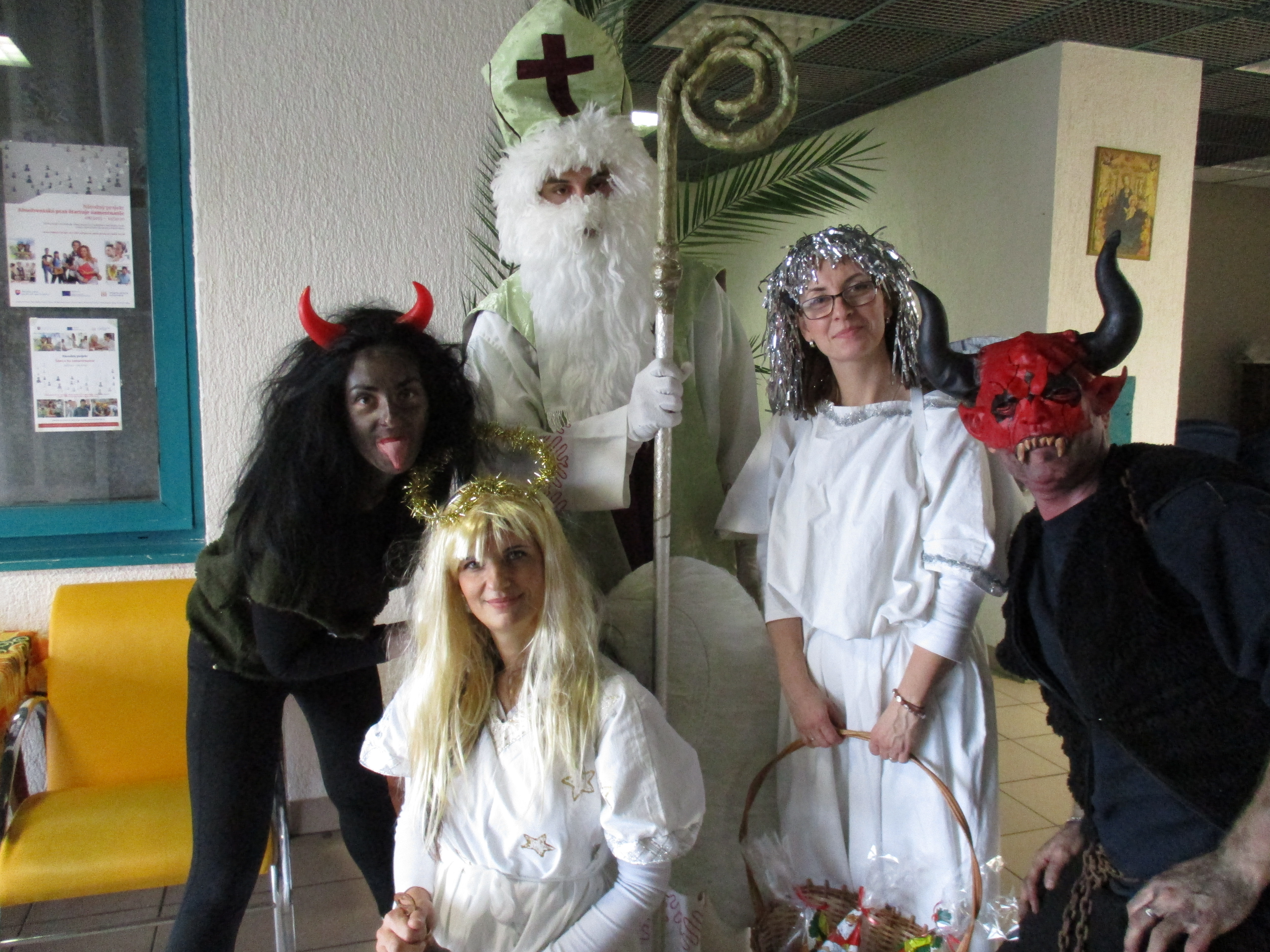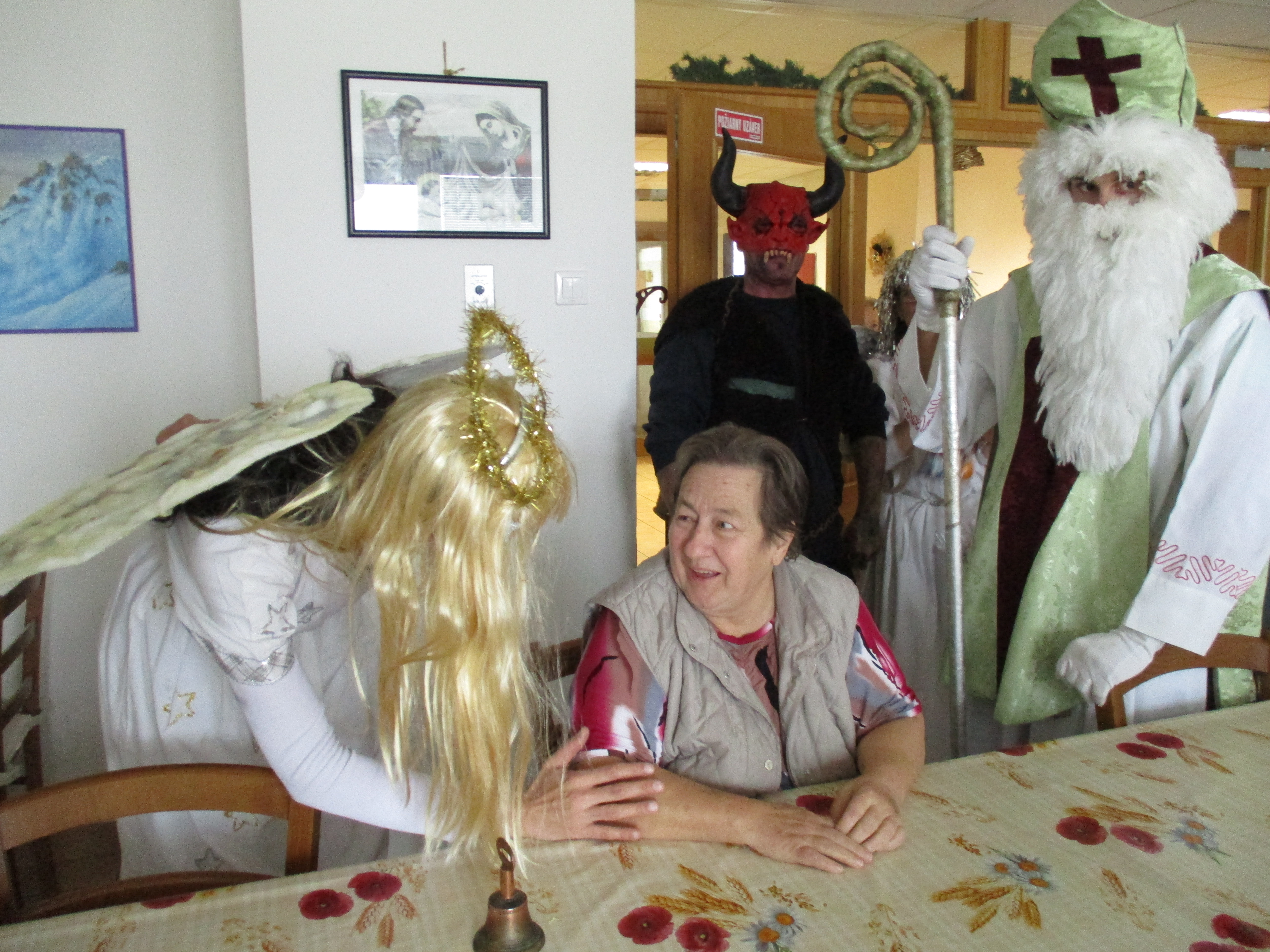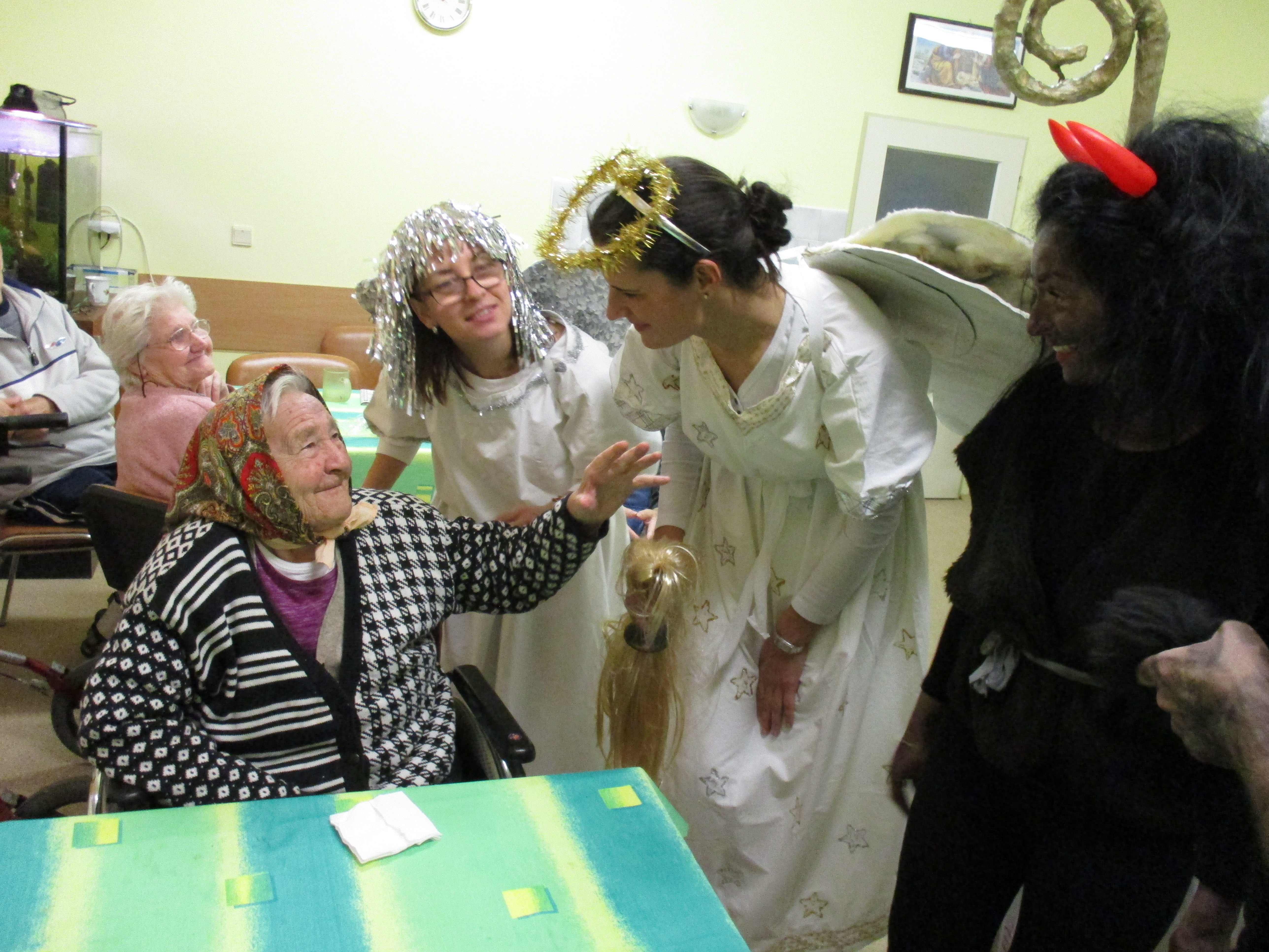 V utorok 6.12.2016 tak ako všade inde, aj k nám zavítal Mikuláš. A veru nebol sám, priviedol si pomocníkov. Dve čierne čertiská a dvoch anjelov. Podaktorých obyvateľov si chceli čertiská zobrať so sebou do mecha, ale tak ako v rozprávke, aj u nás zvíťazilo dobro nad zlom. Každý obyvateľ dostal mikulášsky balíček, už teraz sa tešíme na budúci rok.