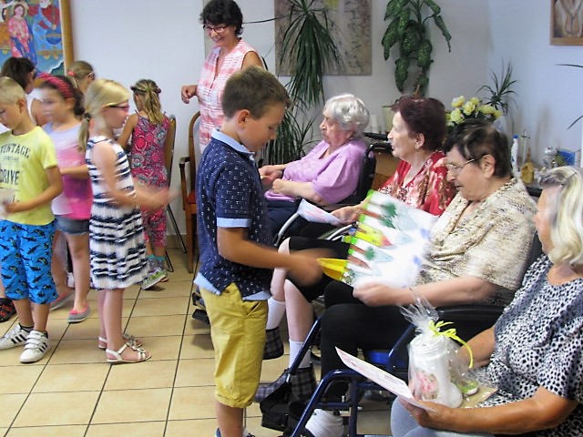 V piatok 23.6.2017 nás prišli navštíviť prváčikovia zo Základnej školy Gbely v sprievode pani učiteľky Mgr. Ľubice Bezákovej. Pre našich obyvateľov si pripravili vystúpenie, súčasťou ktorého boli básne a piesne, ich vystúpenie našich obyvateľov veľmi potešilo. Detičky sme odmenili potleskom a malou sladkosťou a so želaním radostných prázdnin sme sa rozlúčili.