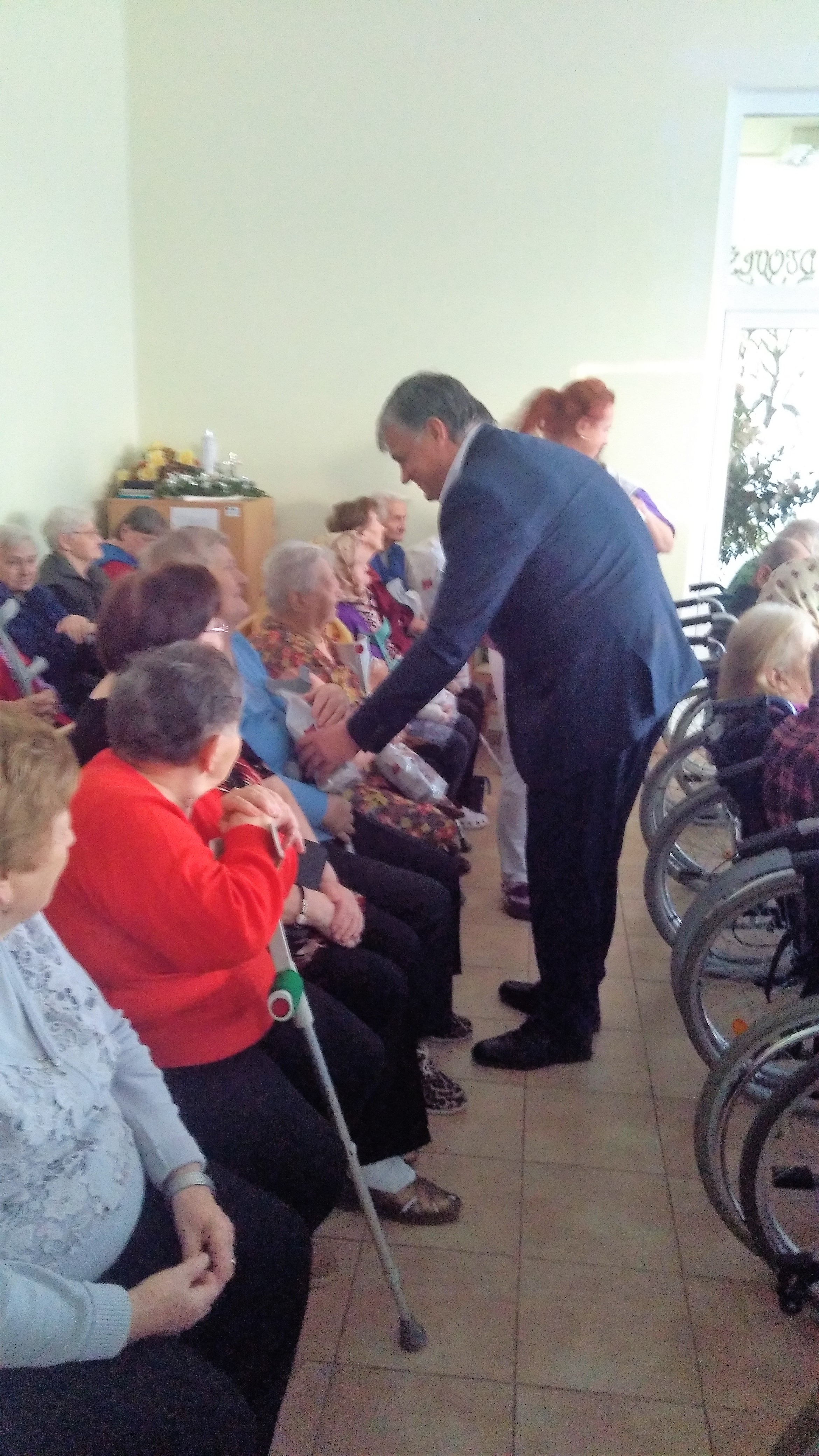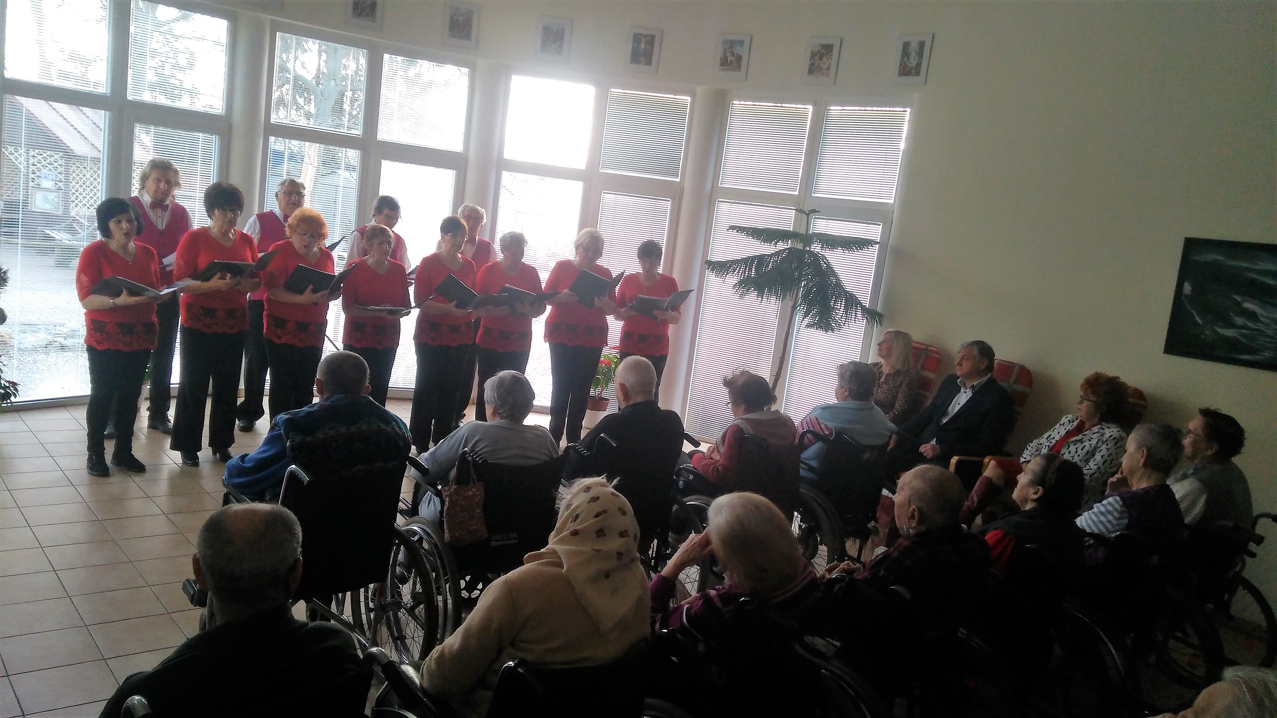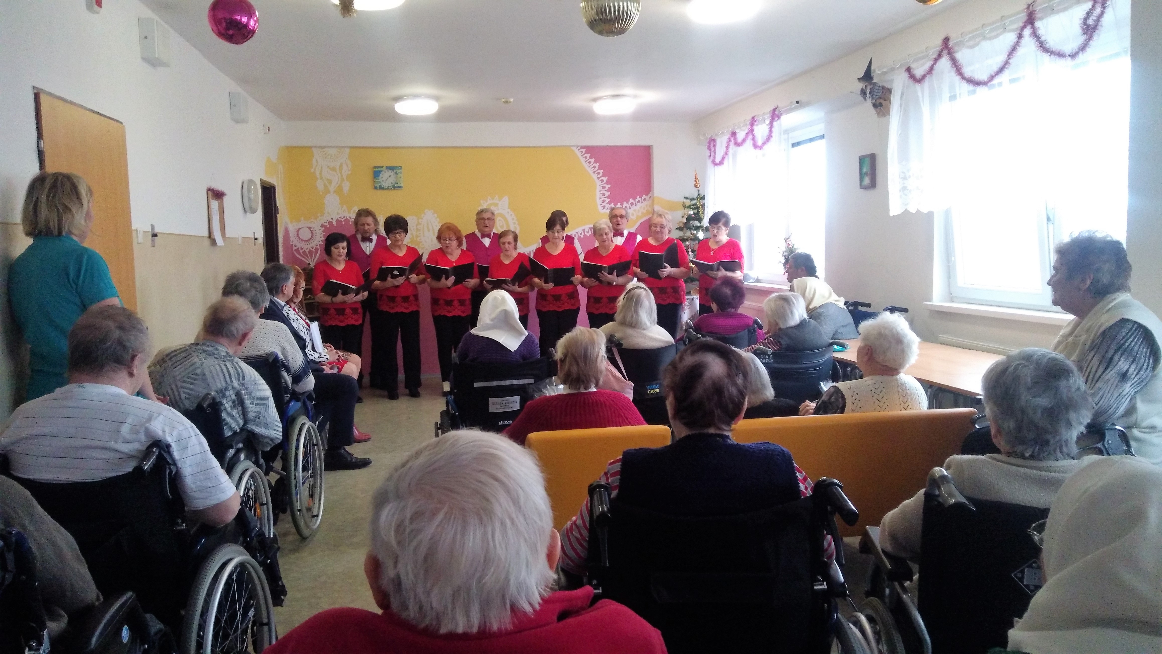 V predvianočný čas nás prišli navštíviť členovia speváckeho súboru Senior. Privítali nás krásnou básňou, po nej nasledovali vianočné piesne. Na záver sme si s nimi zaspievali pieseň Tichá noc. Mnohým našim obyvateľom sa pri tejto piesni tlačili slzy do očí. Po ich vystúpení odovzdal pán primátor Ing. Jozef Hazlinger našim obyvateľom vianočné cukrovinky, Naši obyvatelia ako svoje poďakovanie odovzdali speváckemu súboru Senior a aj pánovi primátorovi vlastnoručne vyrobené vianočné aranžmány a levanduľové vrecúška. So sľubom skorej opätovnej návštevy sme sa rozlúčili.