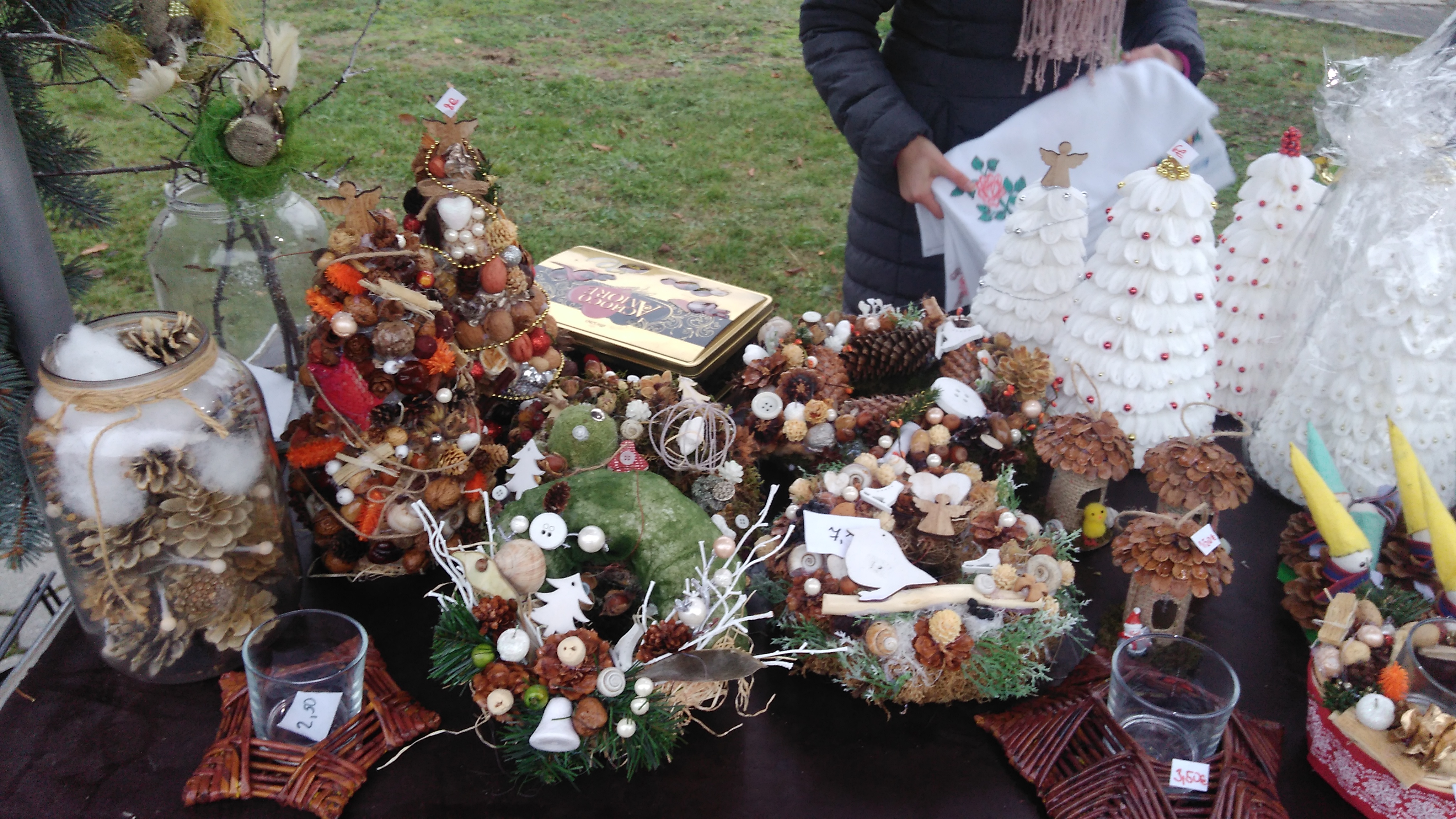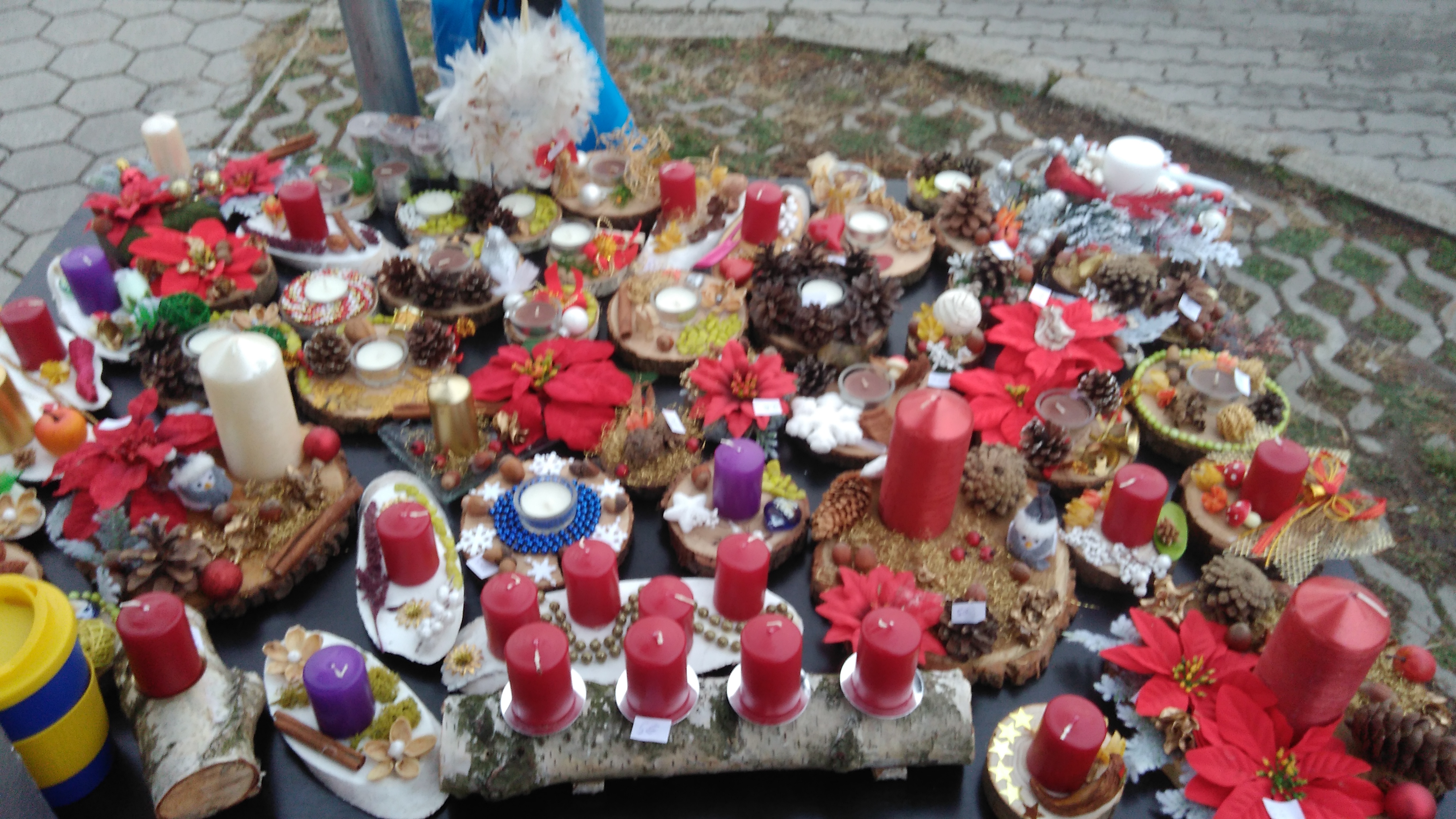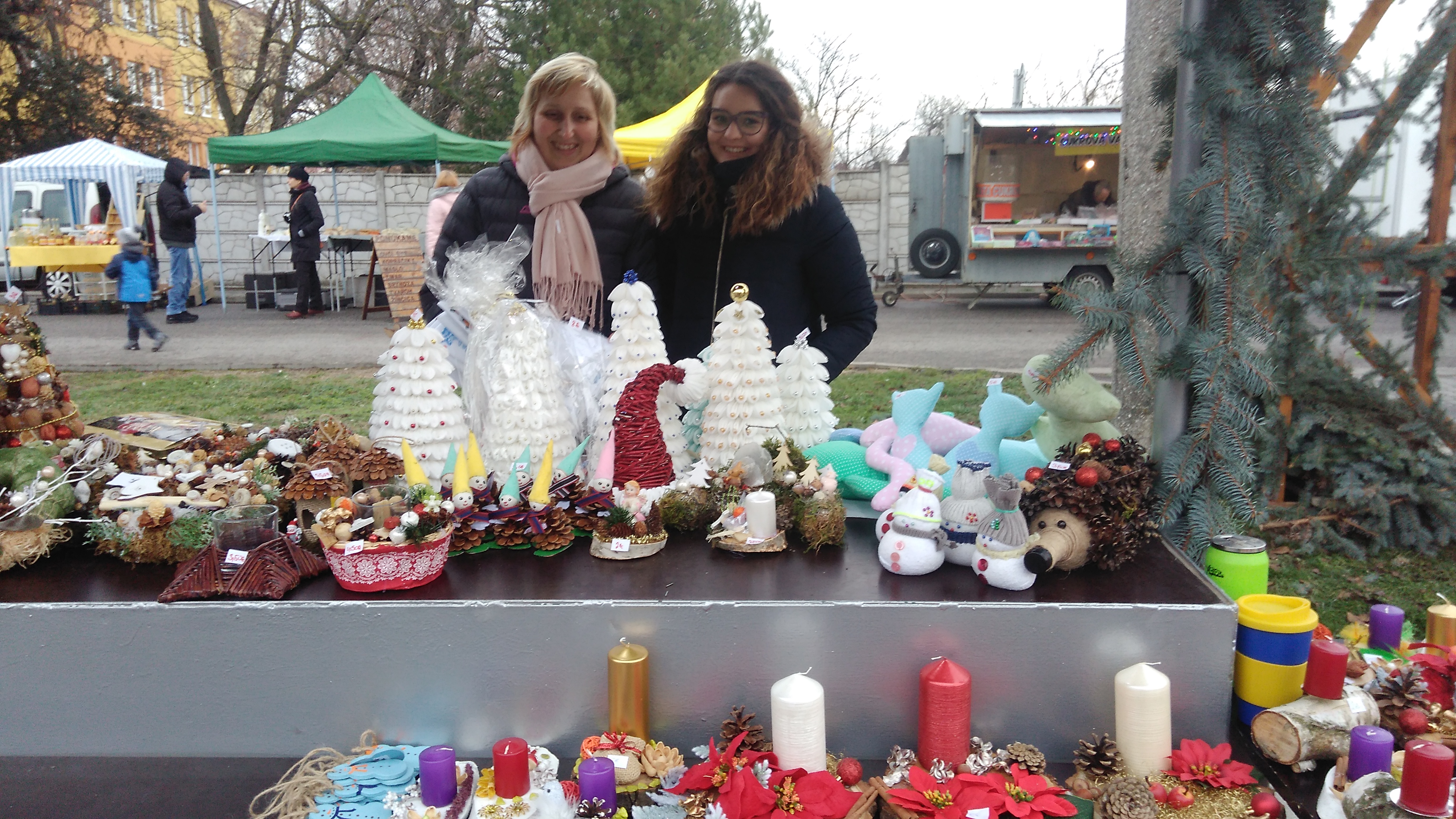 Naši obyvatelia si pripravili rôzne vianočné dekorácie - svietniky, vtáčie búdky zo šišiek, stromčeky z vaty a rôzne iné výrobky a naše terapeutky tieto výrobky prezentovali na Adventnej dedinke - rozsvietení vianočného stromčeka pri Kultúrnom dome Gbely. O naše výrobky bol záujem, pozrite na fotografie :-).
